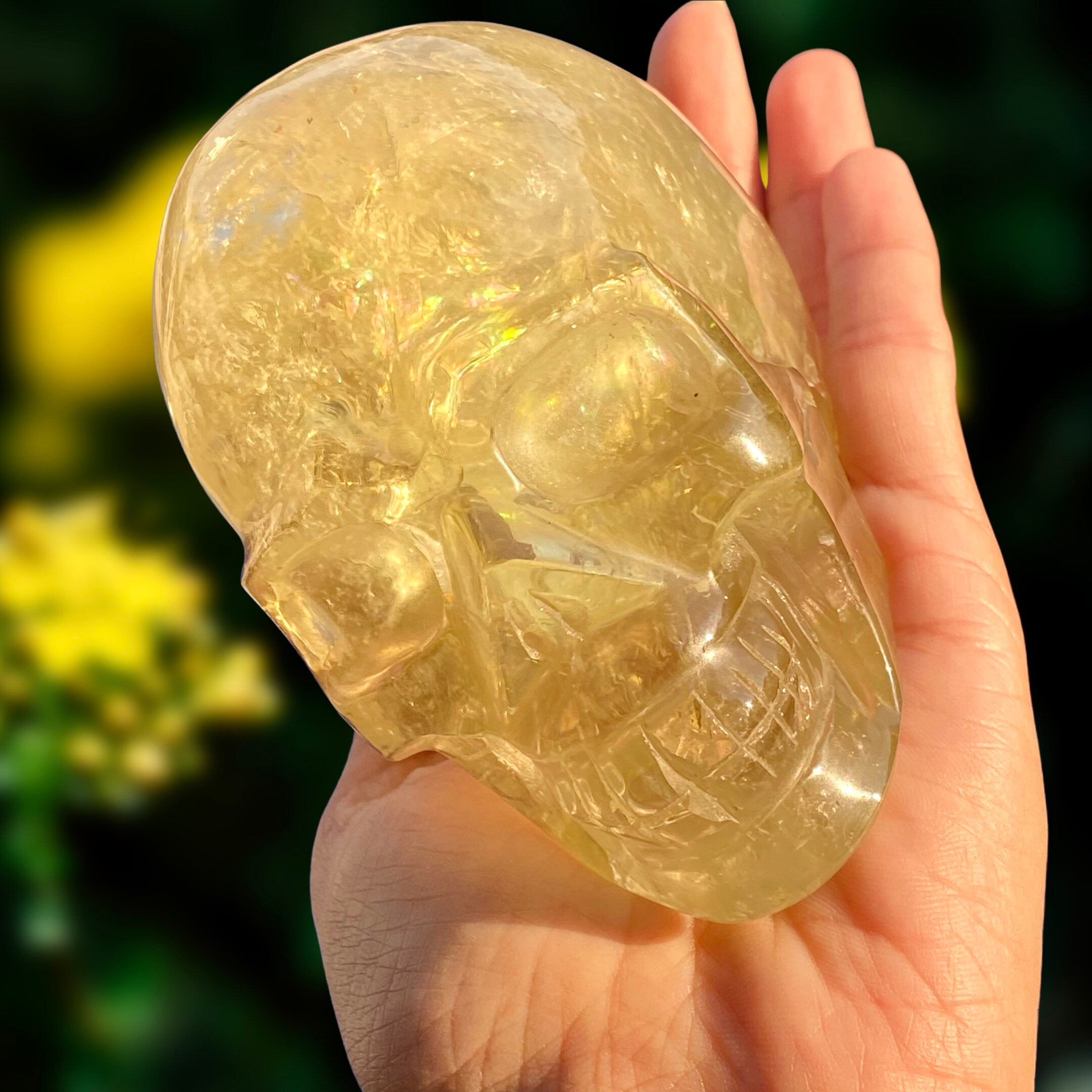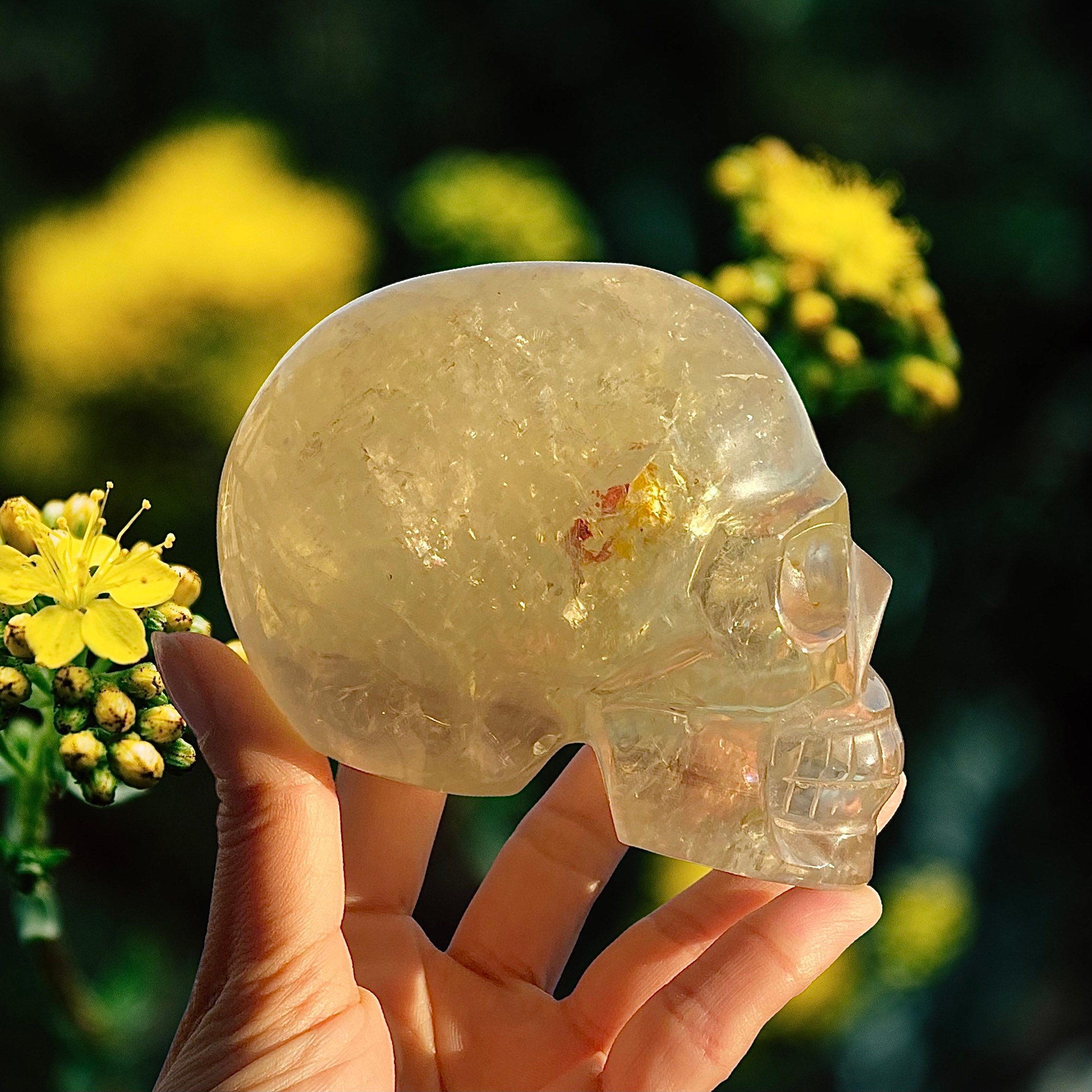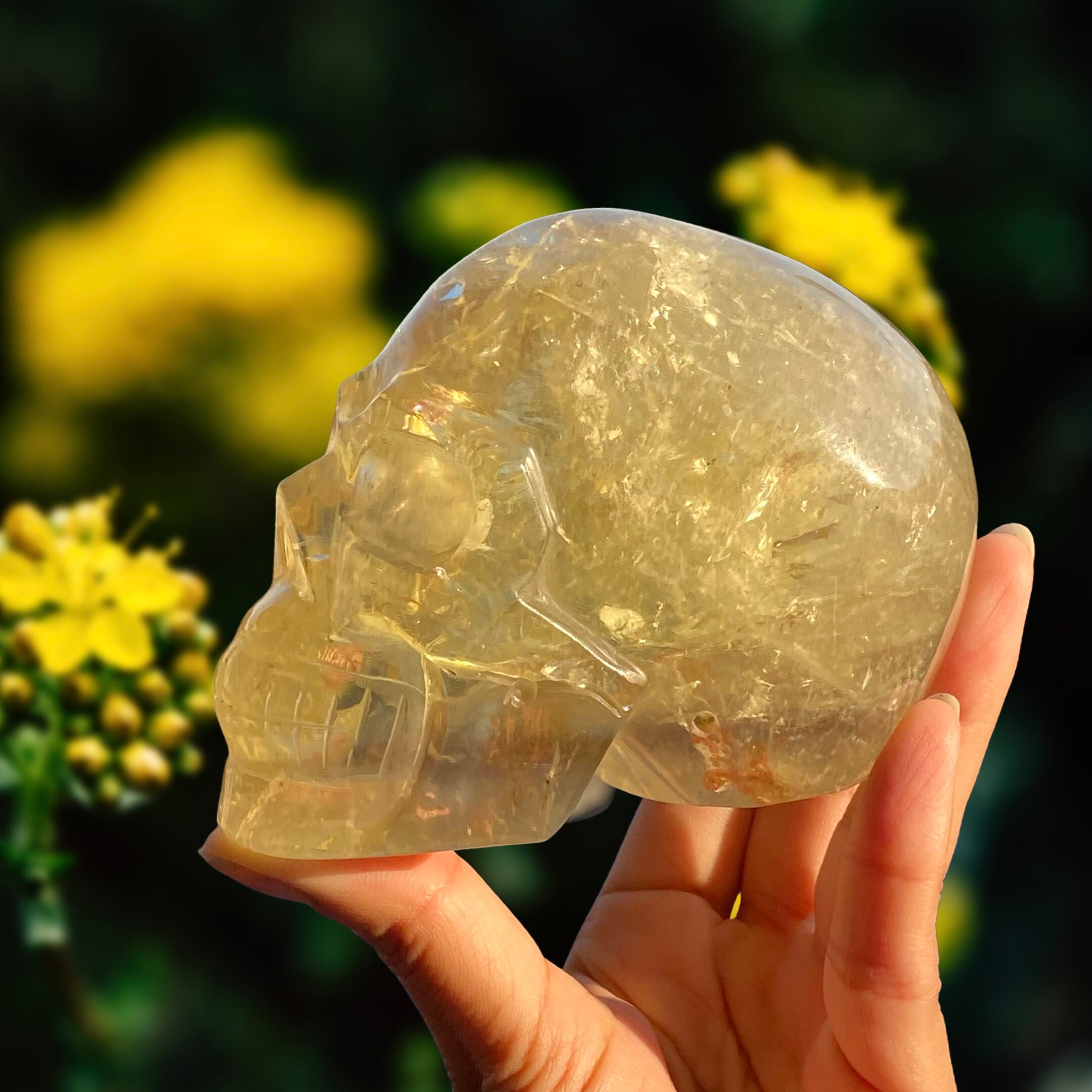 Listing Information: Large Hand-Carved Citrine Crystal Skull • Heat treated Smoky Quartz • Approx. 2.5 x 4 x 2.9 inches, 1.12 lbs • You will receive the exact crystal as photographed.