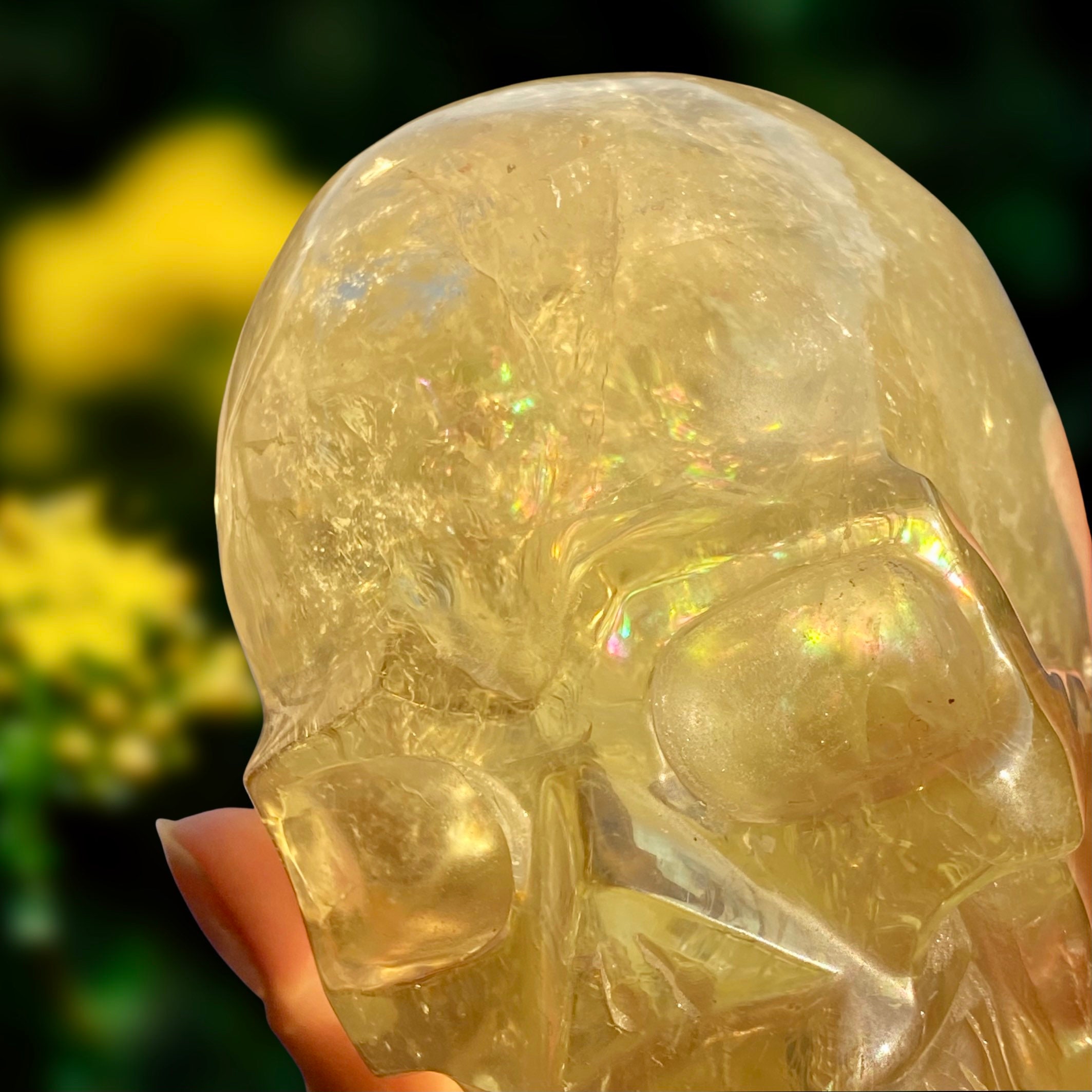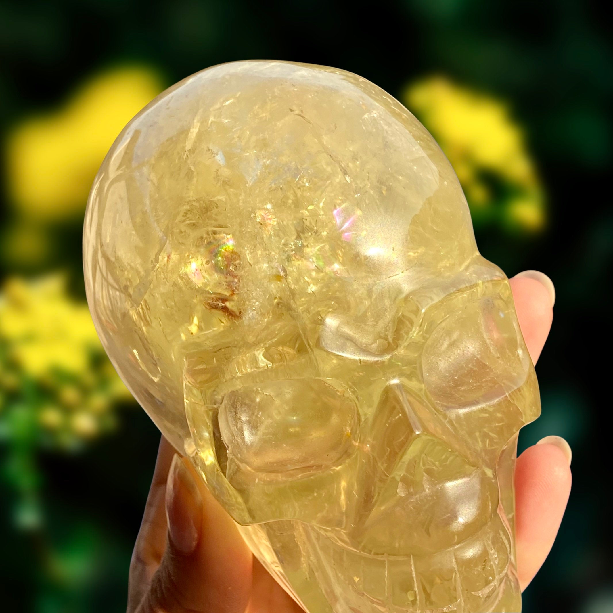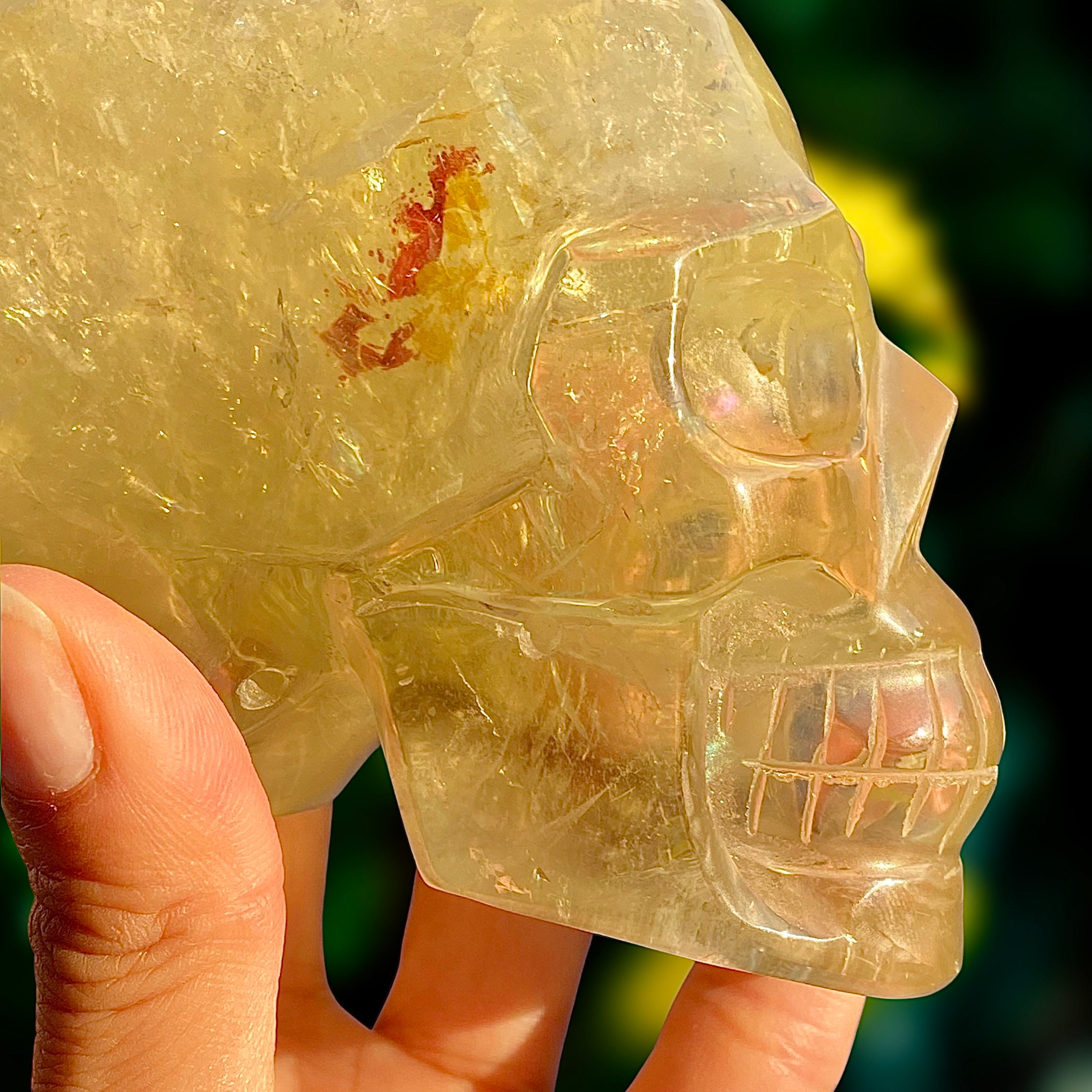 Listing Information: Large Hand-Carved Citrine Crystal Skull • Heat treated Smoky Quartz • Approx. 2.5 x 4 x 2.9 inches, 1.12 lbs • You will receive the exact crystal as photographed.
