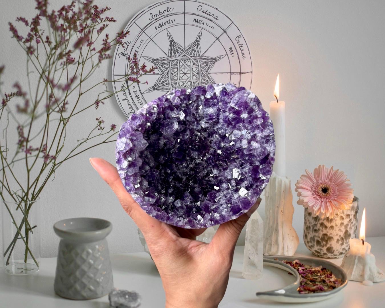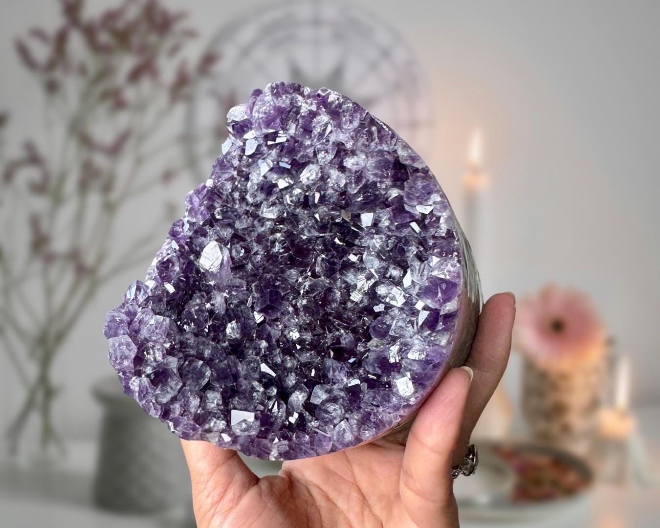 Listing Information: Large Polished Deep Purple Amethyst Cylinder • Approx. 3.5 (H) x 4.25 (W) inches, 1485 grams (1.49 kg) • You will receive the crystal photographed.