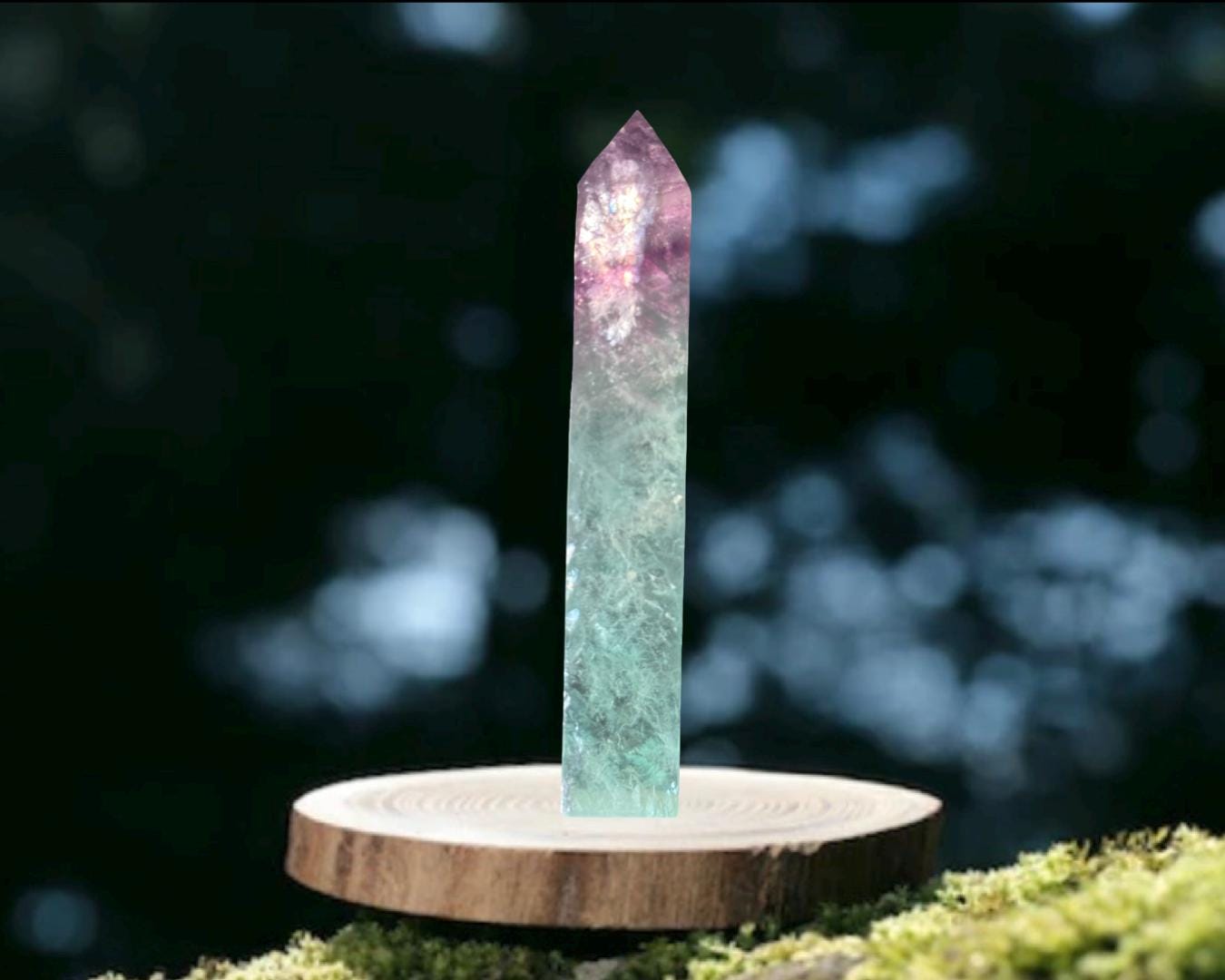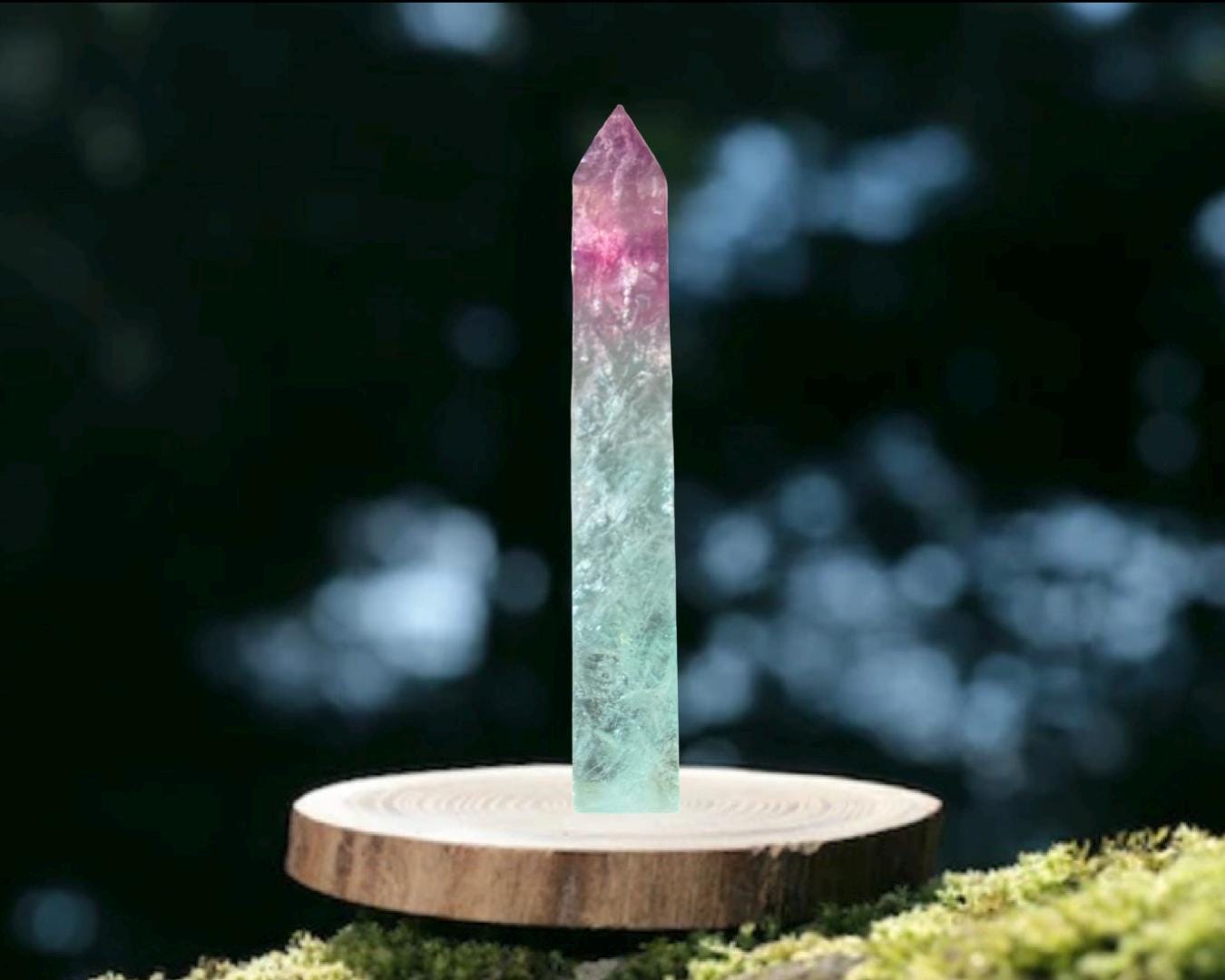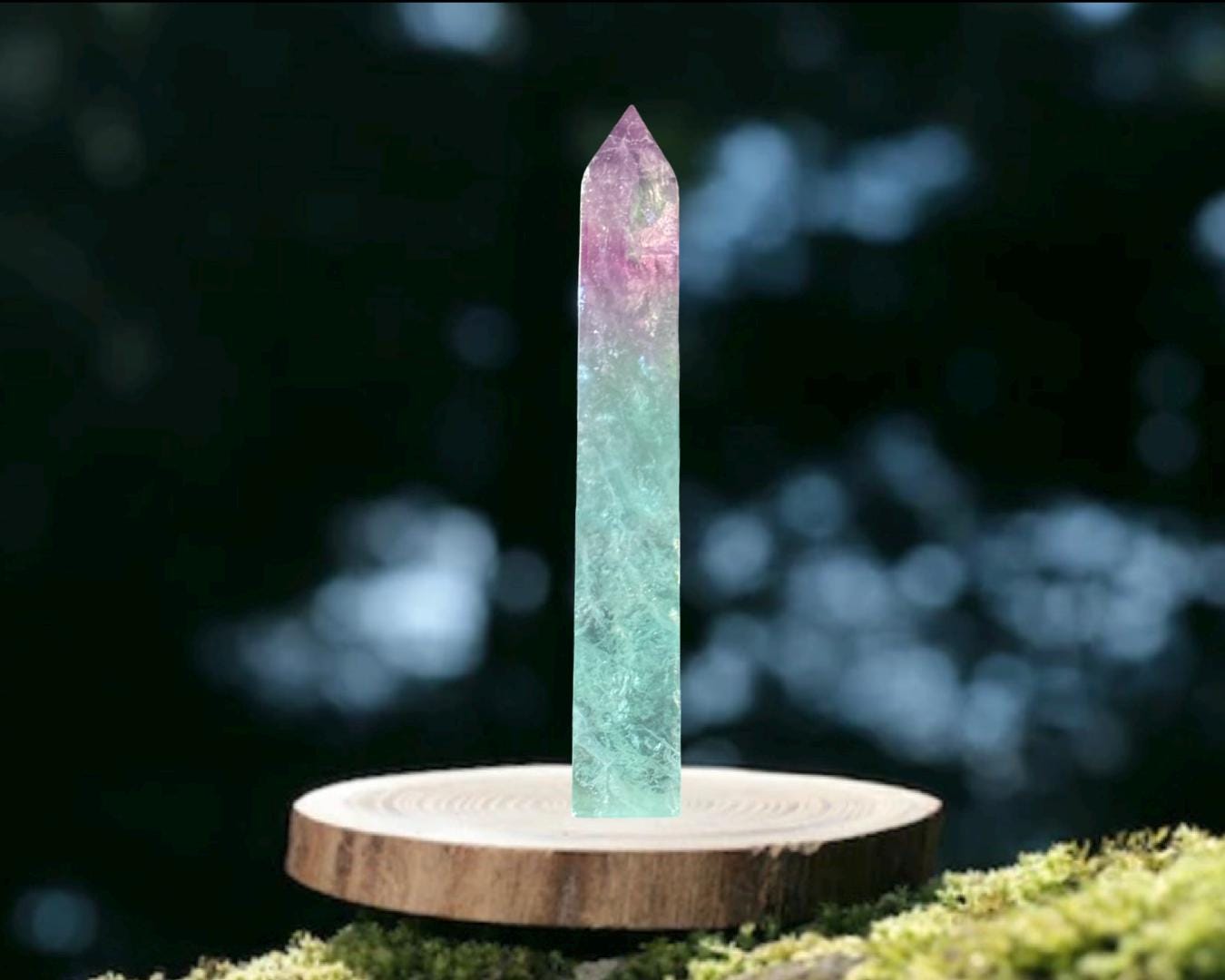 Listing Information: Watermelon Fluorite Obelisk (approx. 6 (H) x 0.90 (W) x 0.80 (D) inches, 270 grams).
