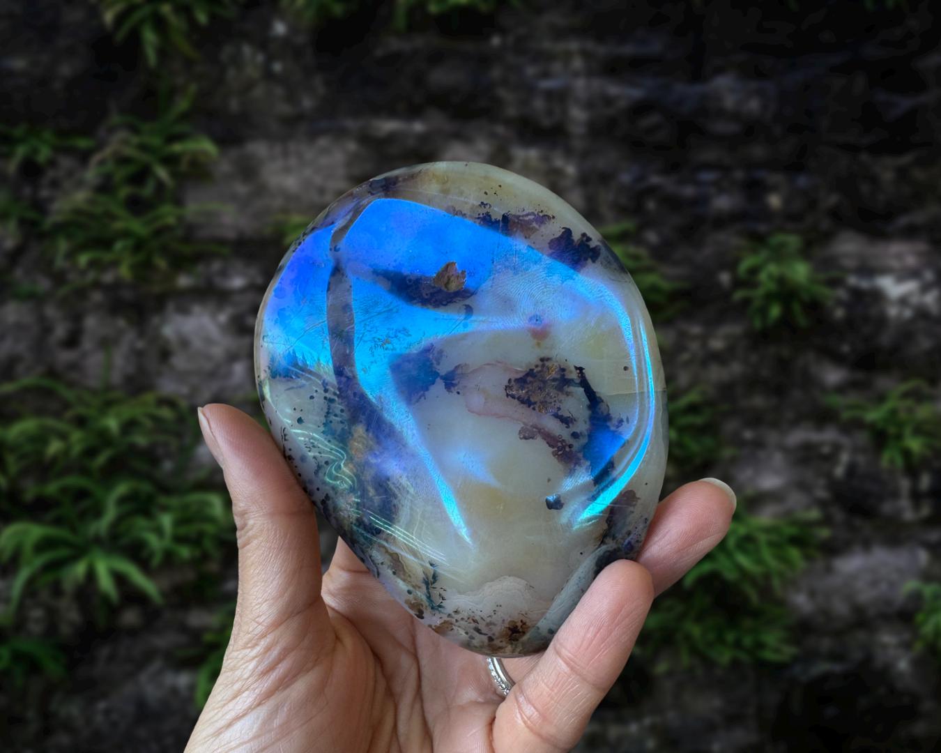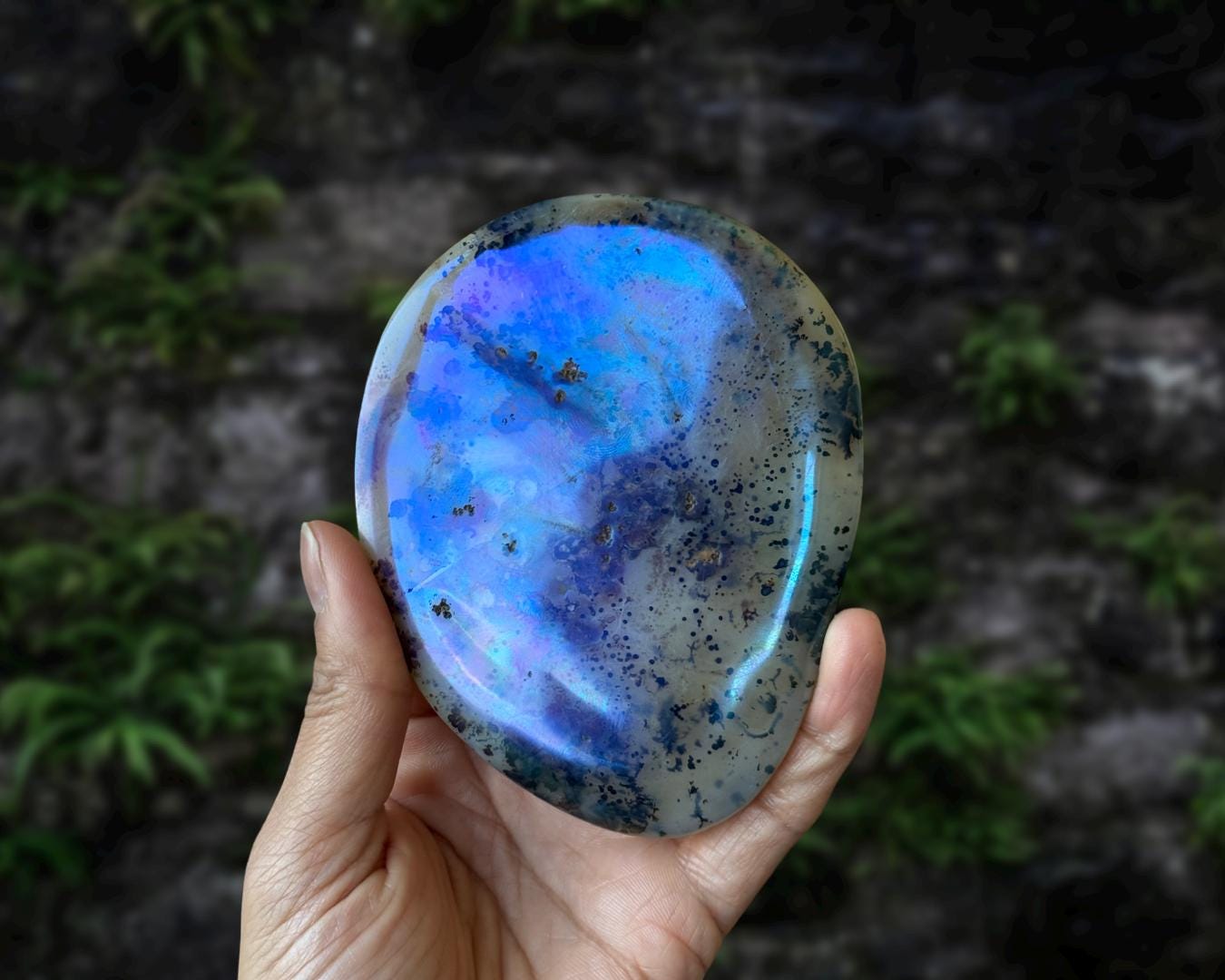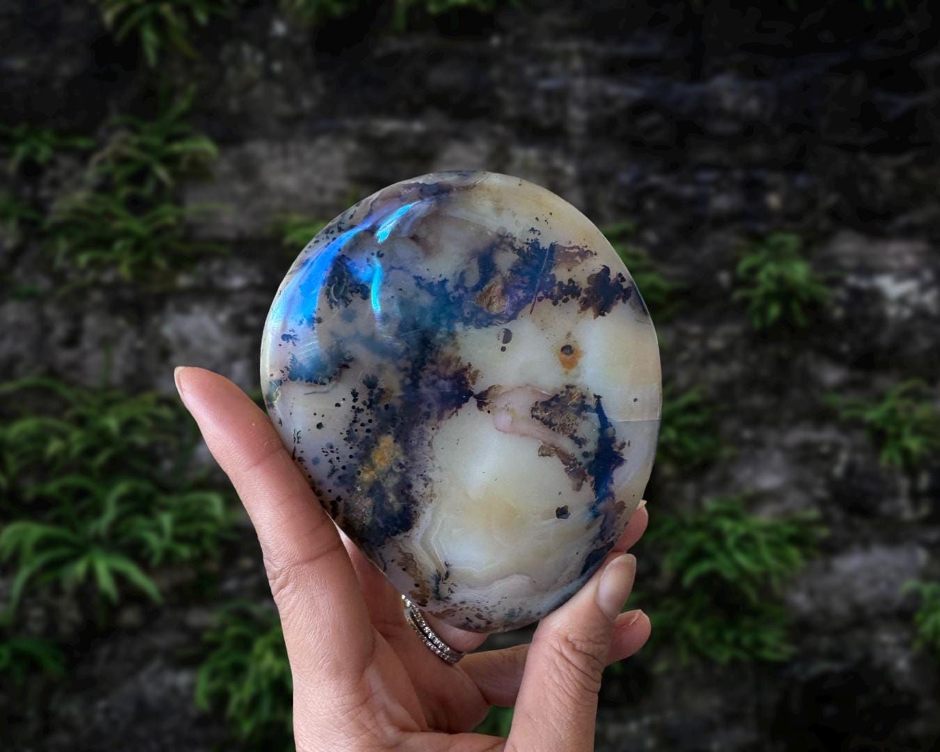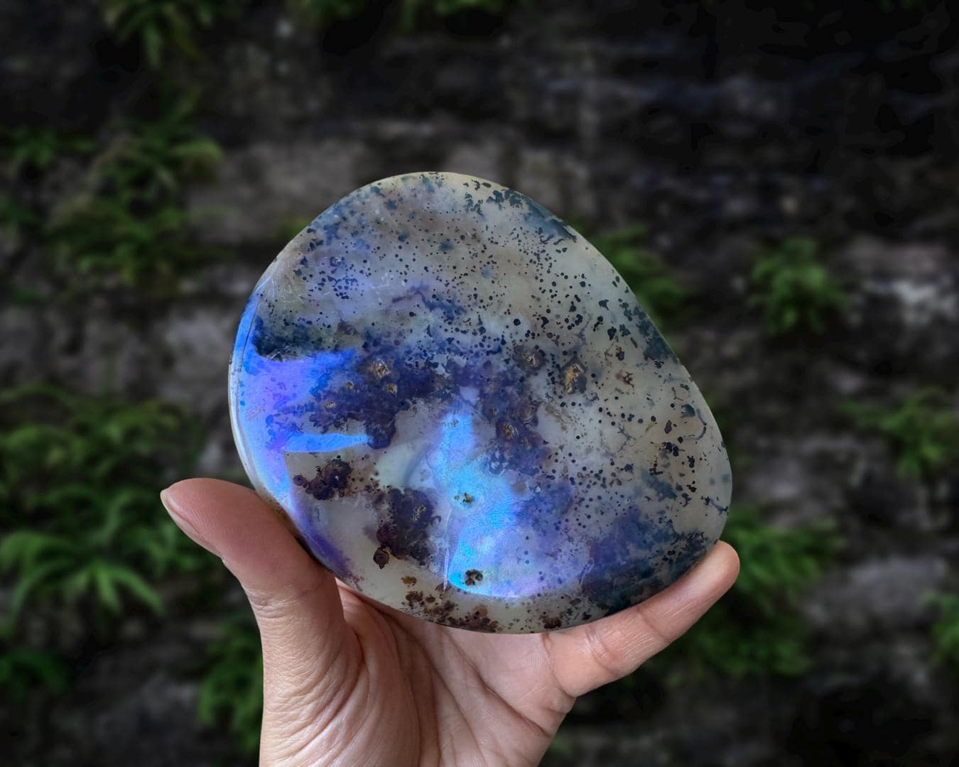 Moss agate is said to encourage tranquillity and emotional balance. It’s useful for those who experience strong aggression or overly nurturing emotions, helping to balance male and female energies whenever they become too extreme.
