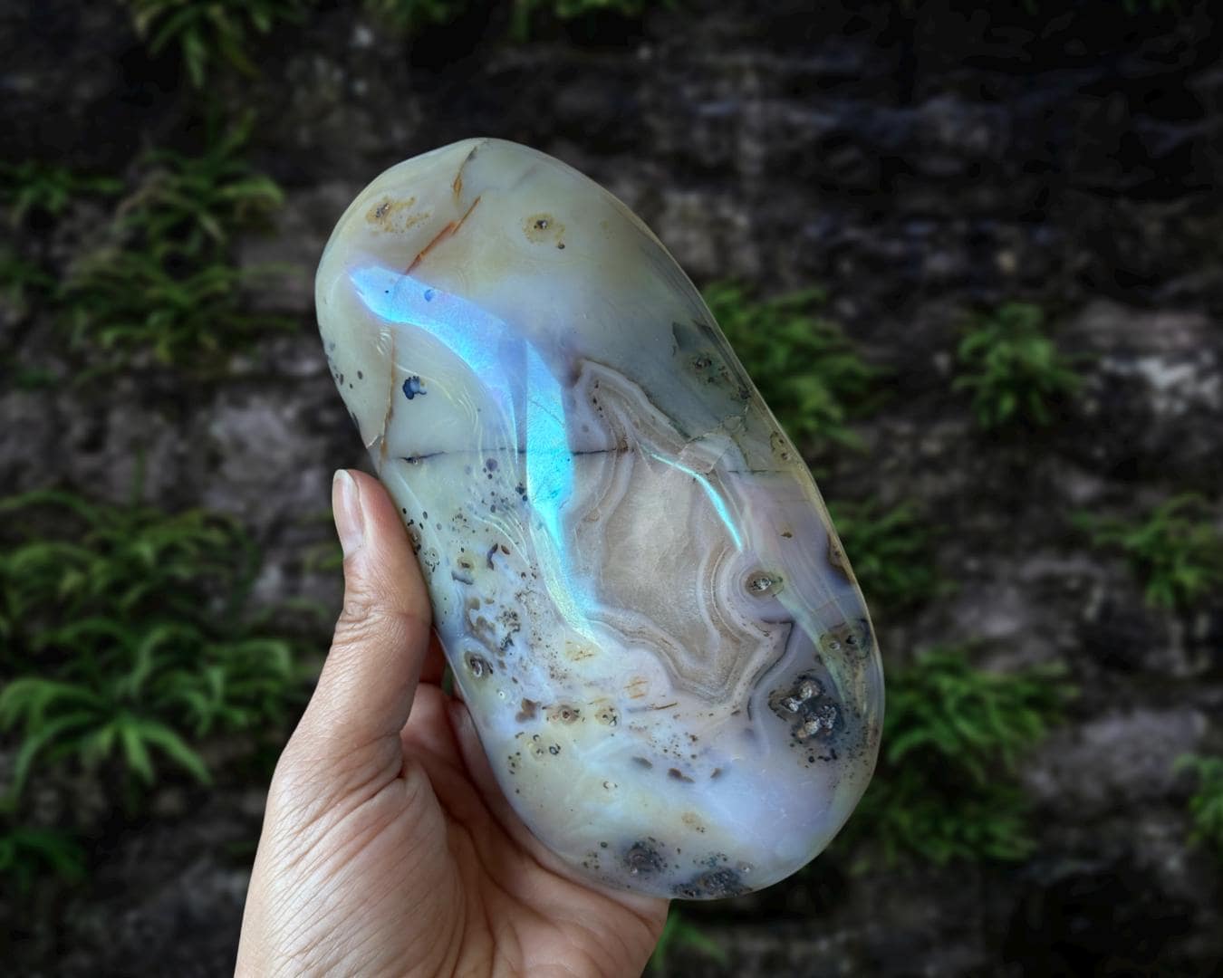 Moss agate is said to encourage tranquillity and emotional balance. It’s useful for those who experience strong aggression or overly nurturing emotions, helping to balance male and female energies whenever they become too extreme.