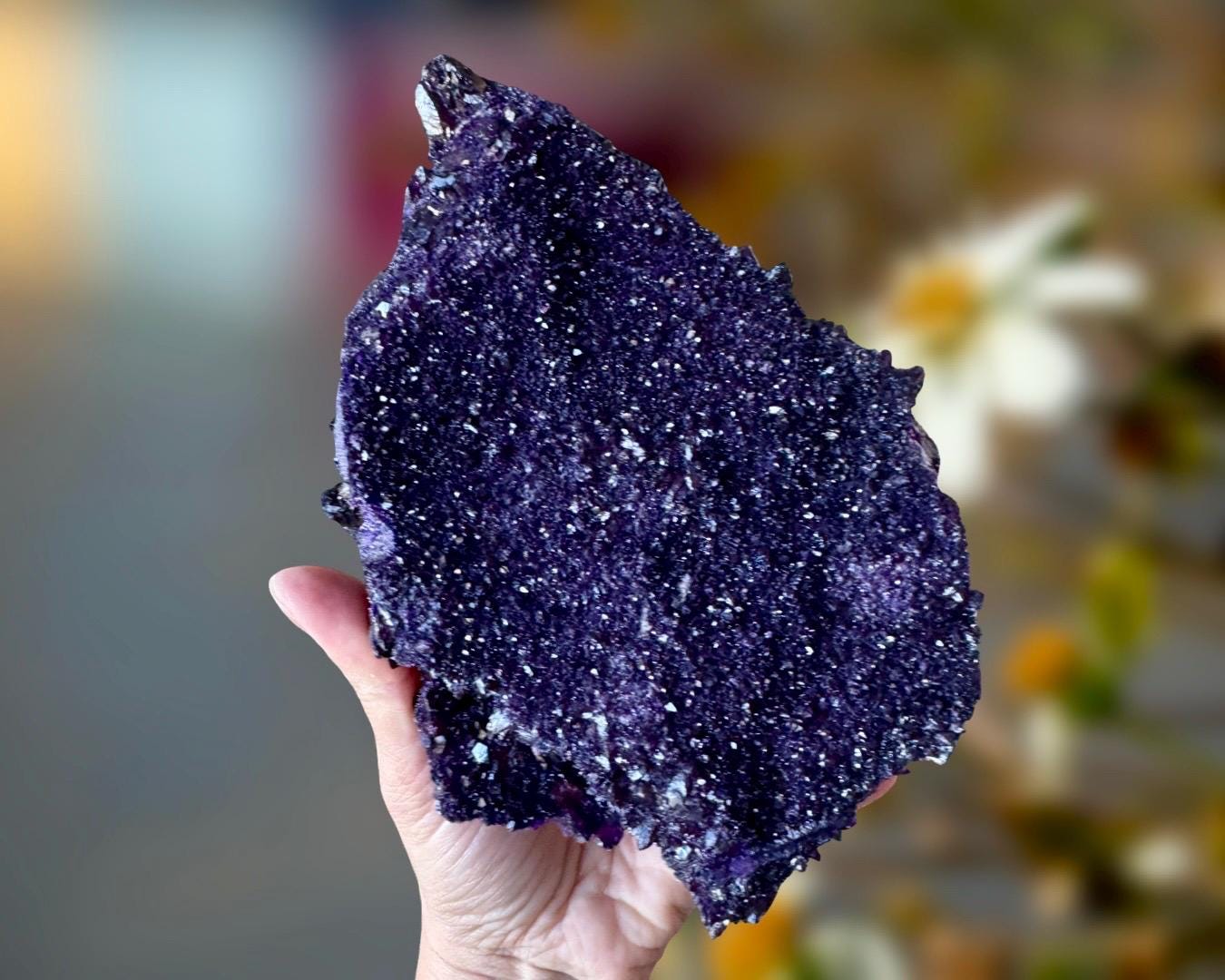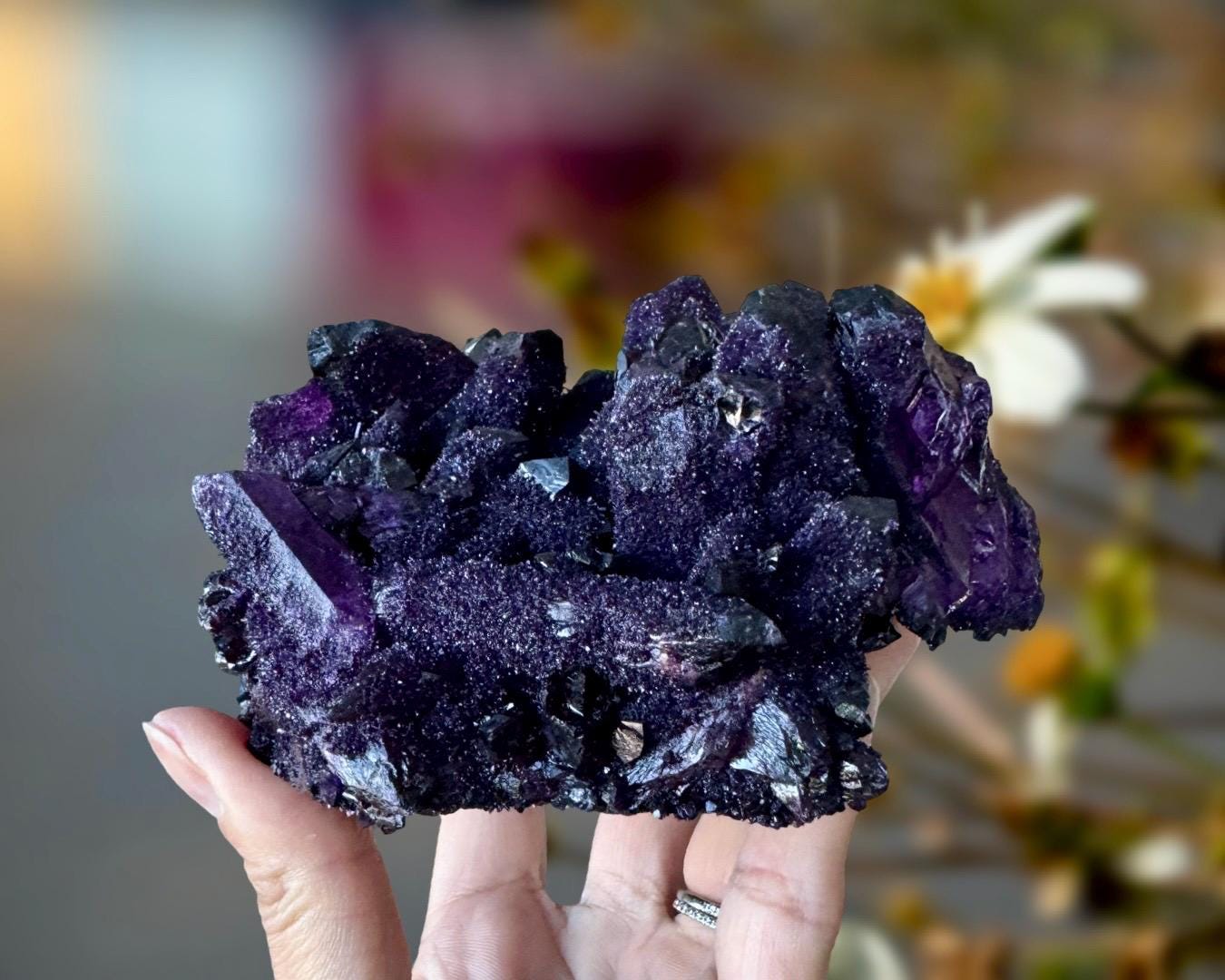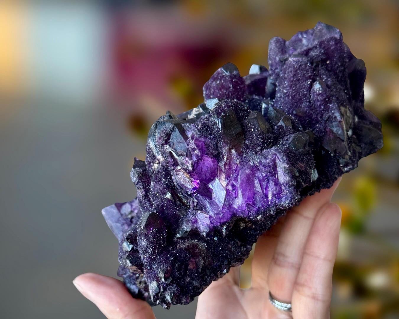 True to the name, the deep purple colour of this specimen is majestic. This striking piece makes a beautiful home decor accent and is wonderful for displaying delicate jewelry.