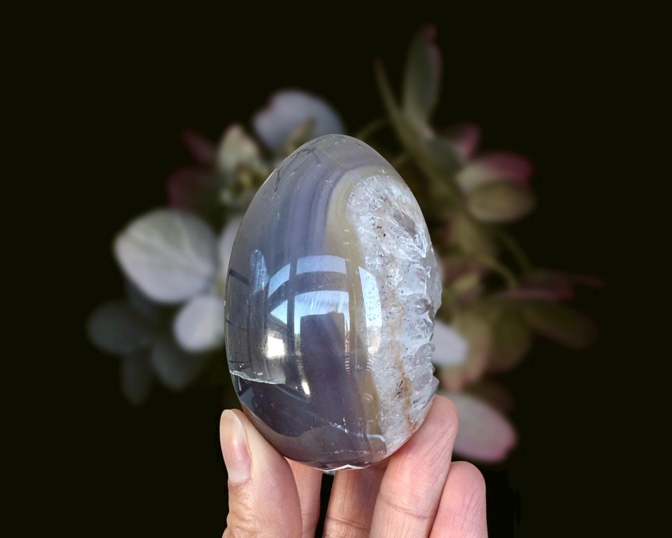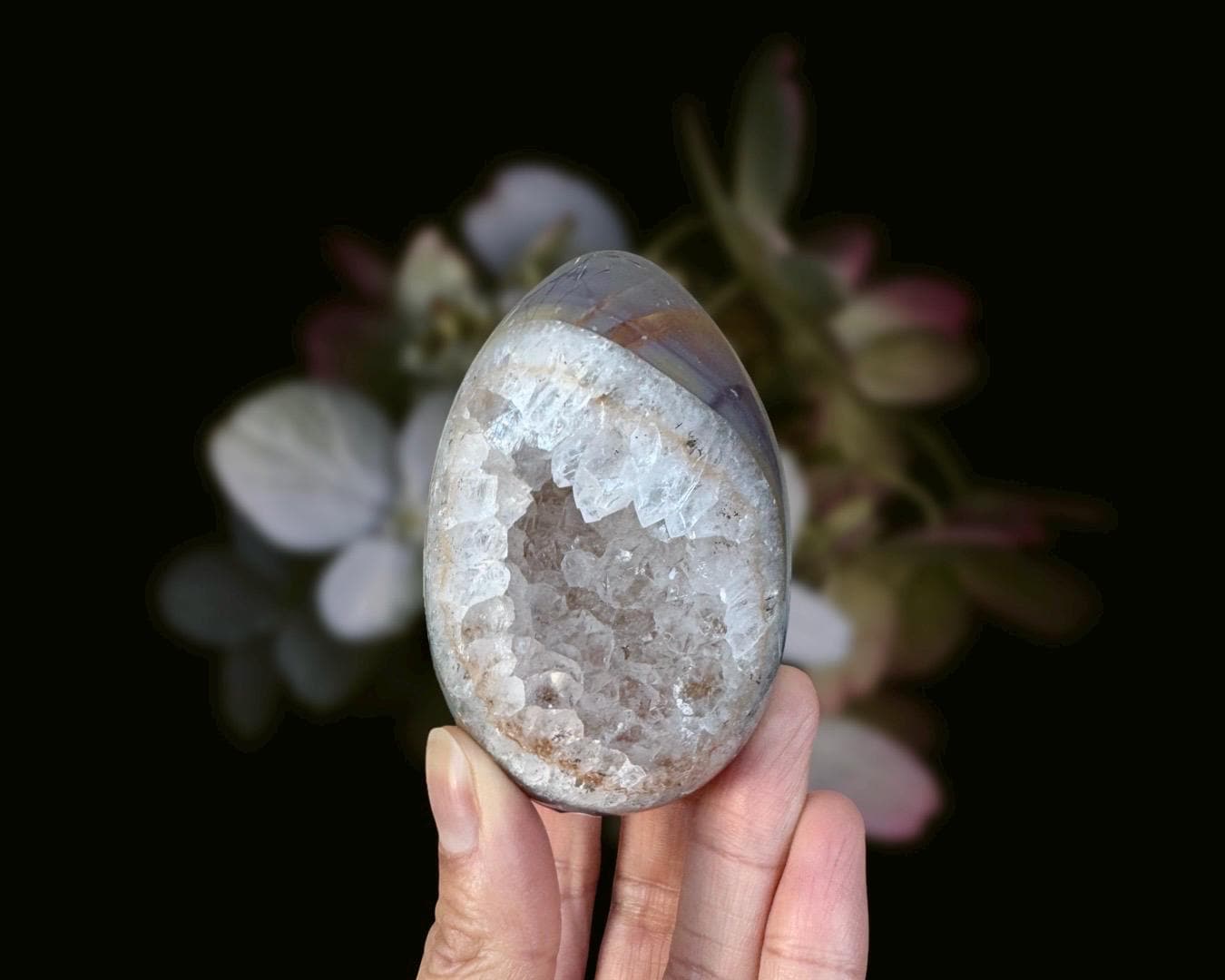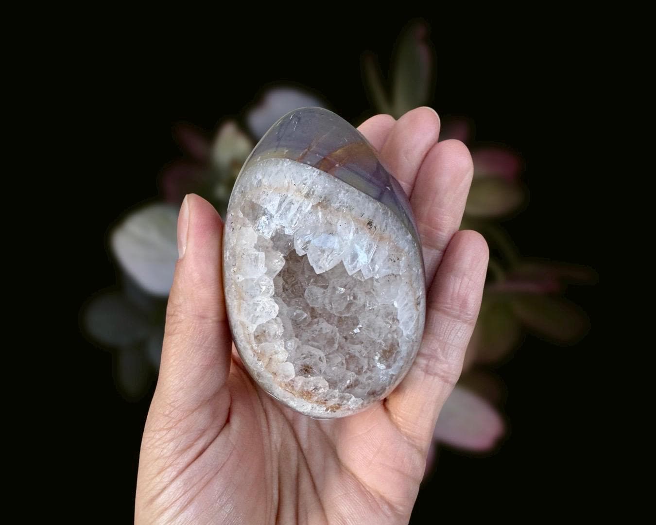 Listing Information: Natural Agate Geode Egg. Approx. 2.9 x 1.9 inches, 253 grams.
