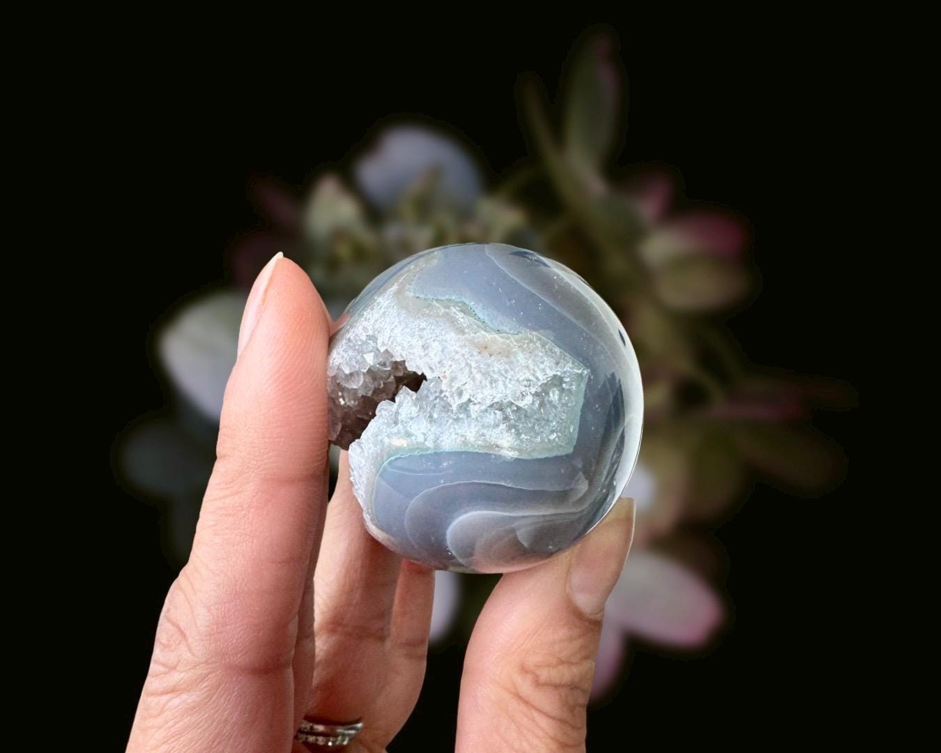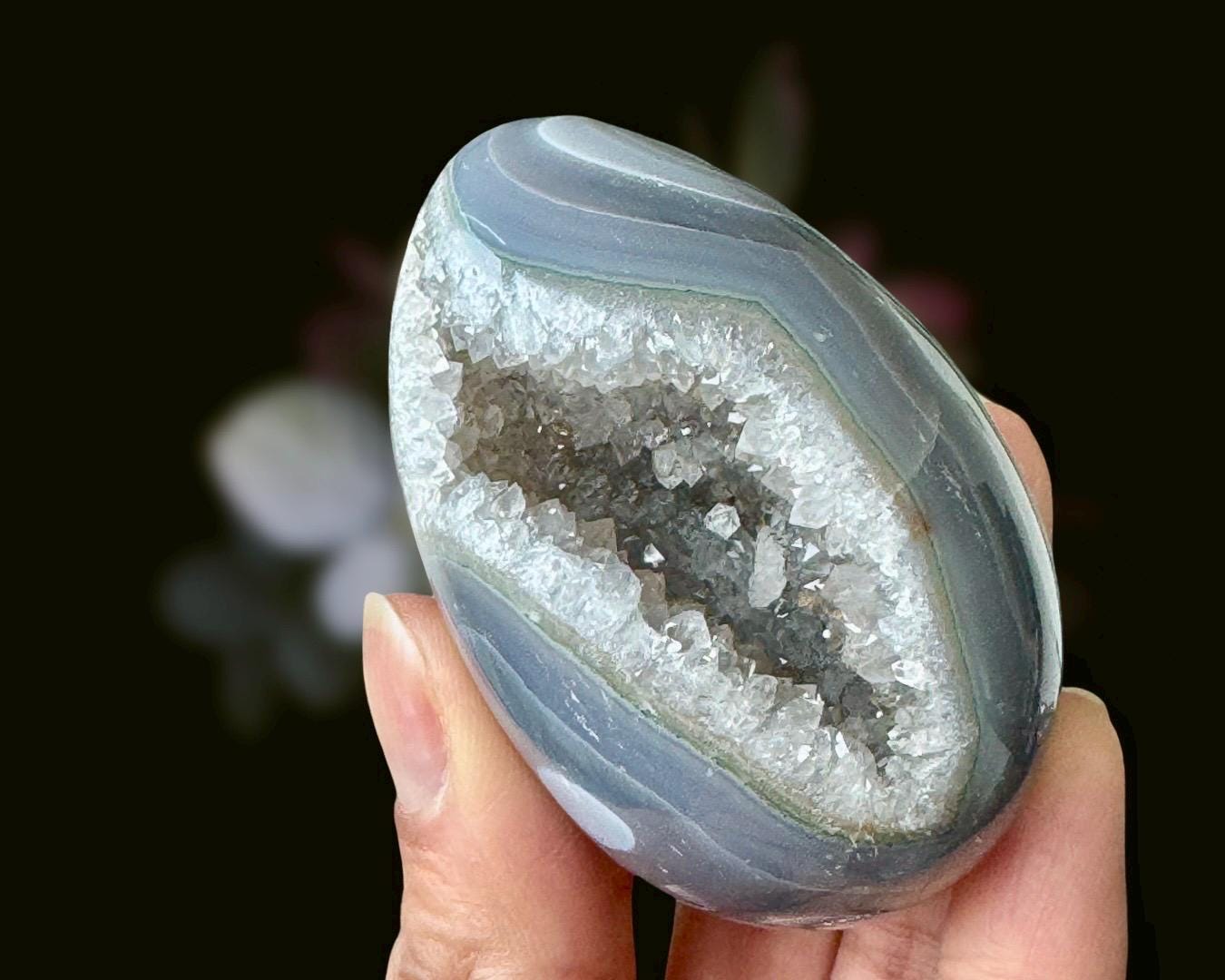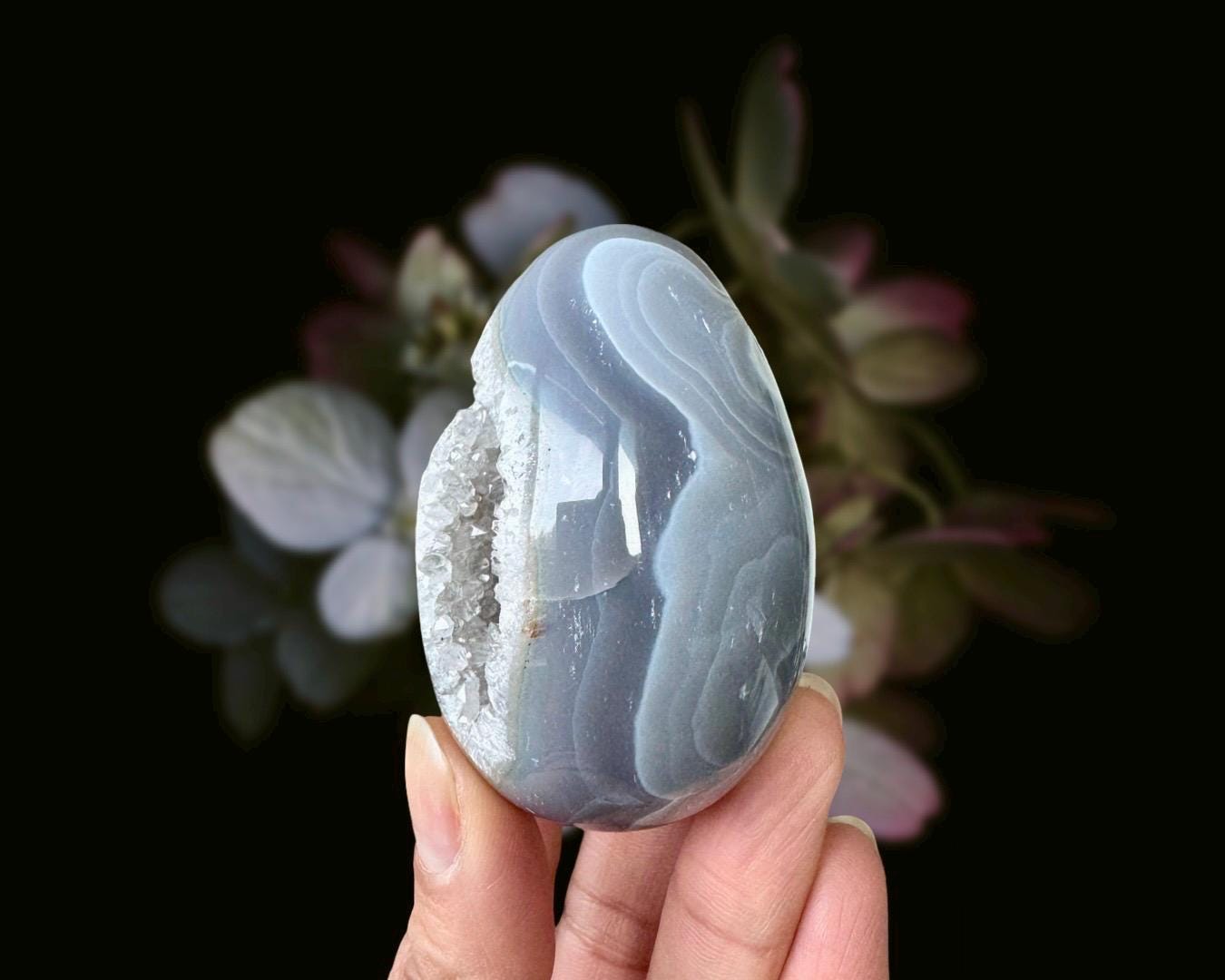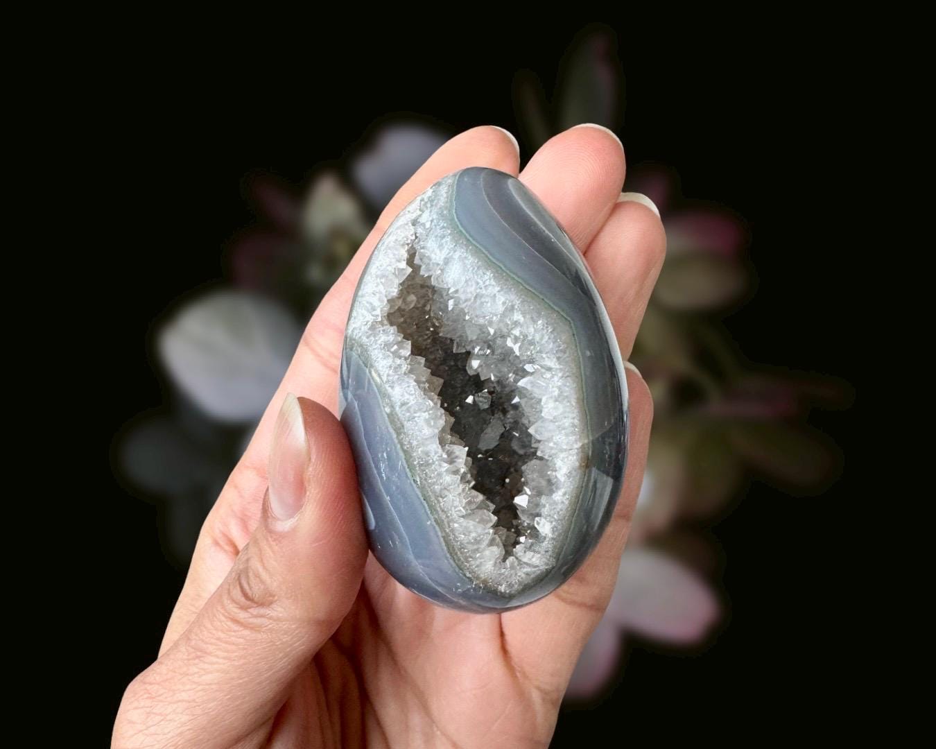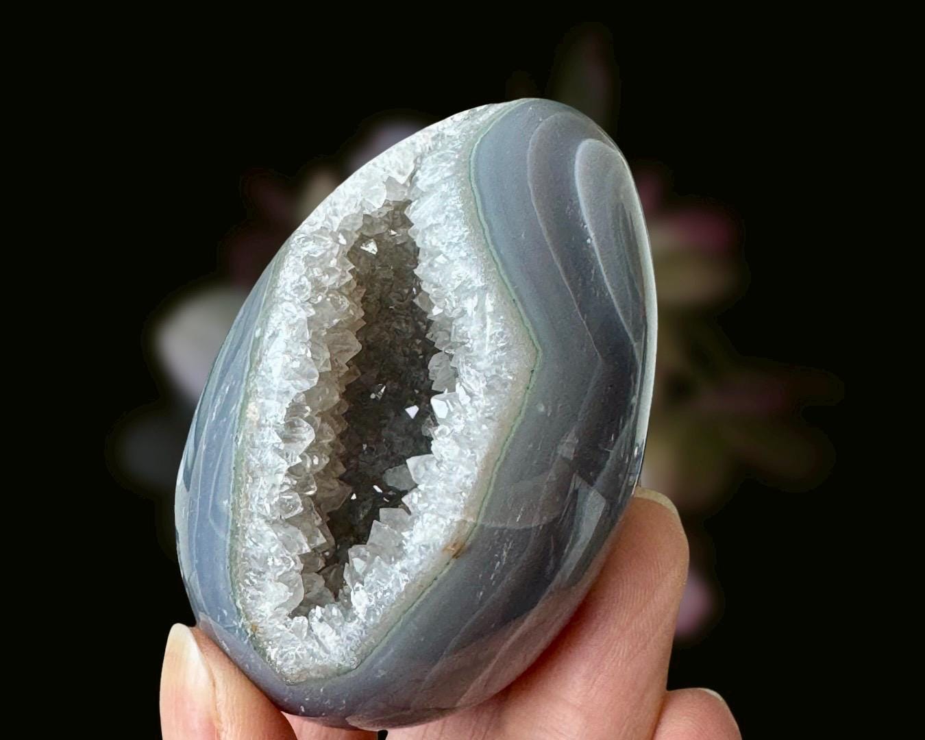 Listing Information: Natural Agate Geode Egg. Approx. 2.5 x 1.6 inches, 138 grams.