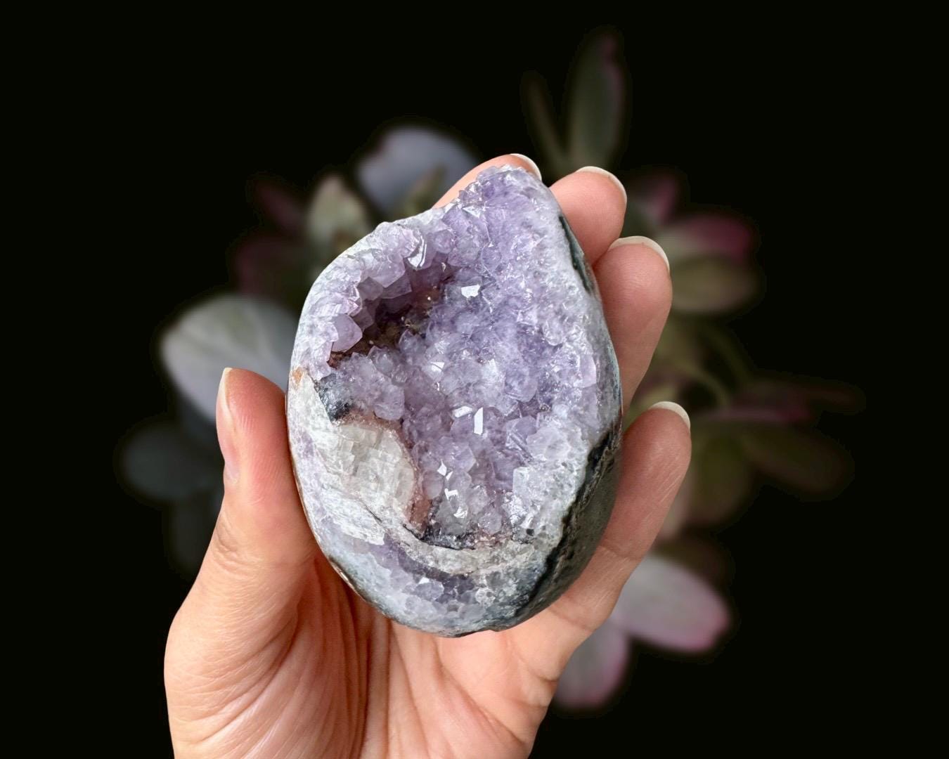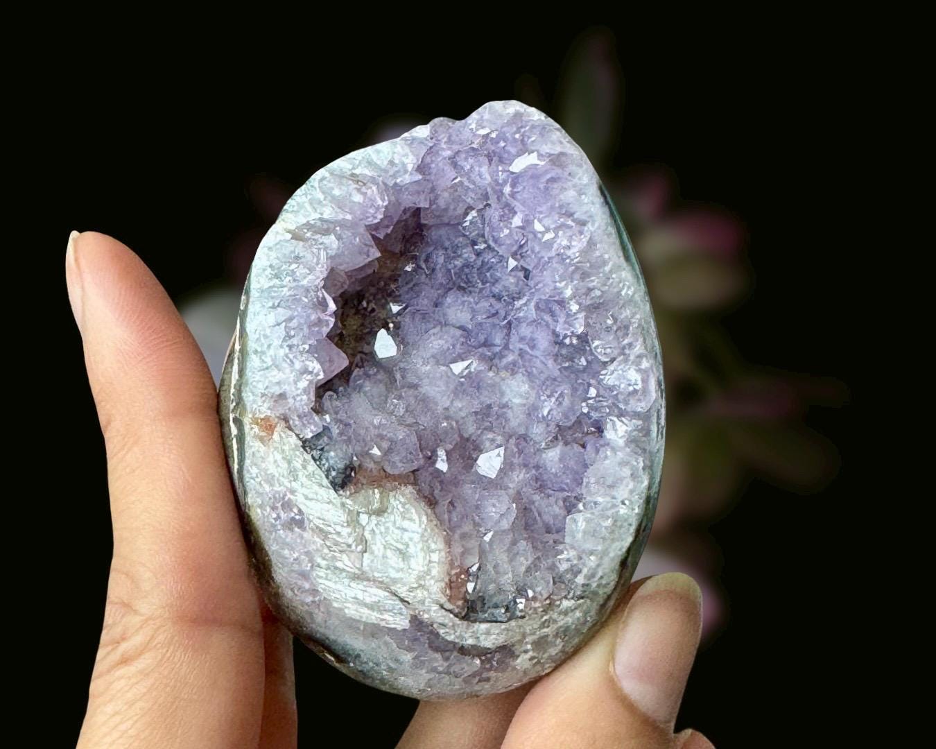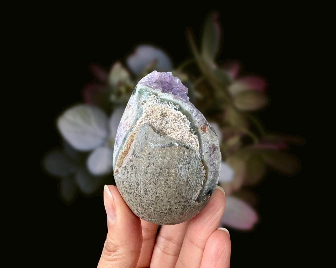Listing Information: Natural Amethyst Crystal Egg. Approx. 2.7 x 1.9 inches, 197 grams.
