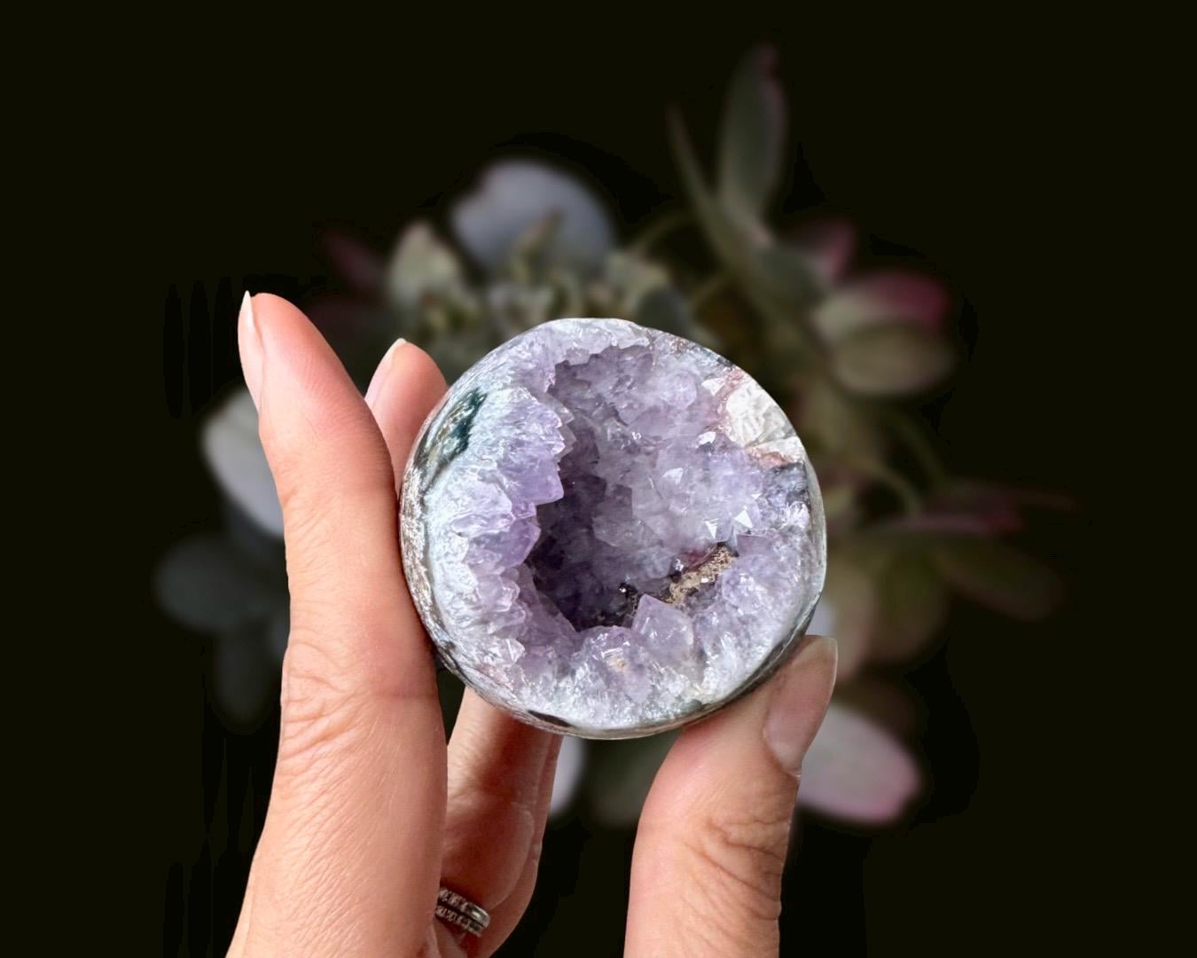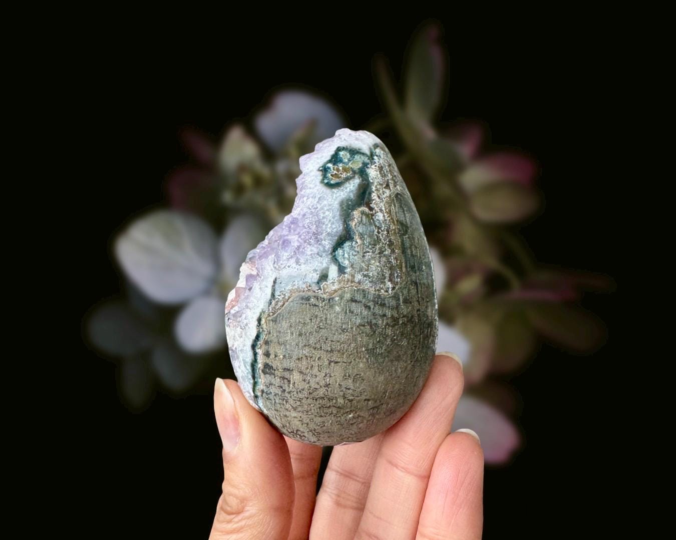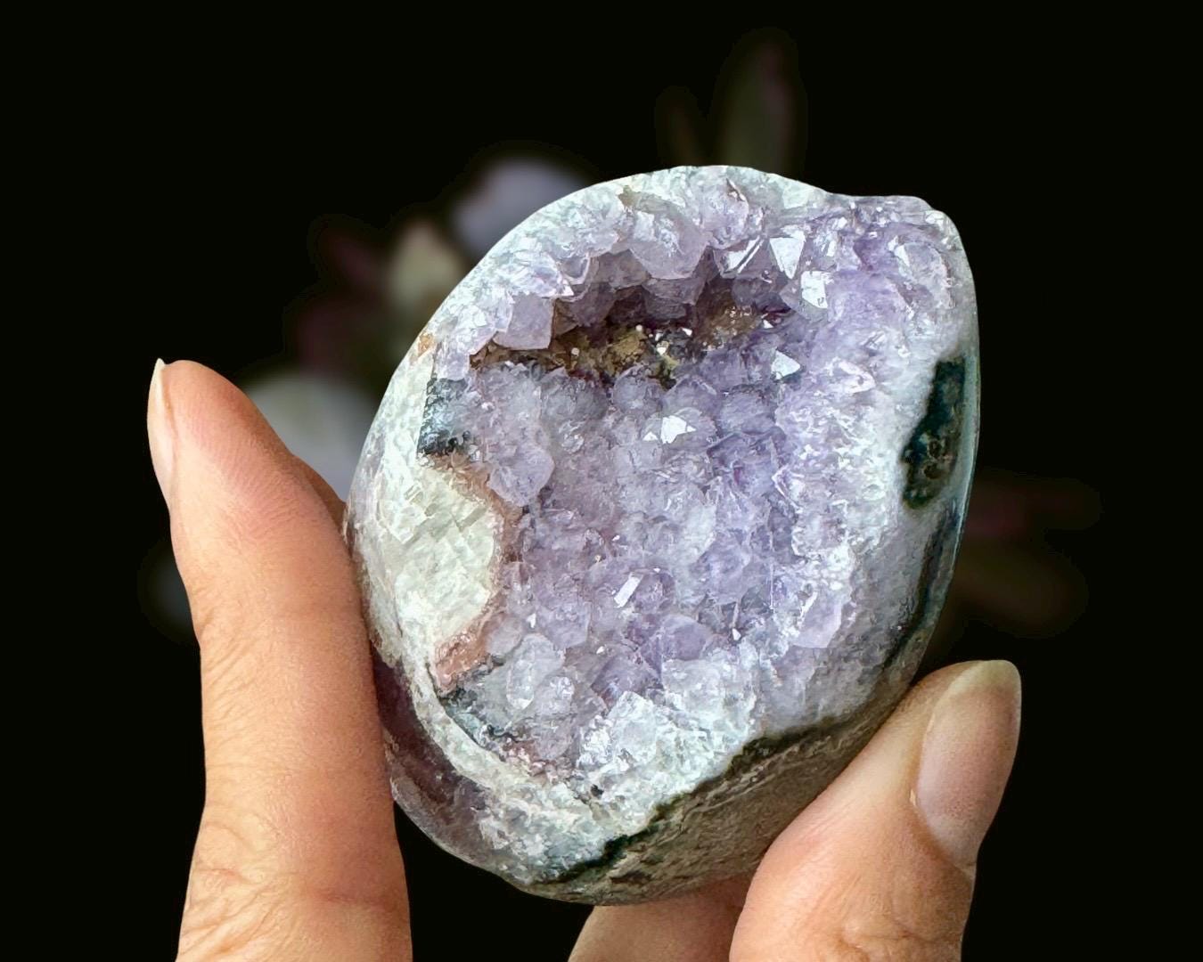 Listing Information: Natural Amethyst Crystal Egg. Approx. 2.7 x 1.9 inches, 197 grams.