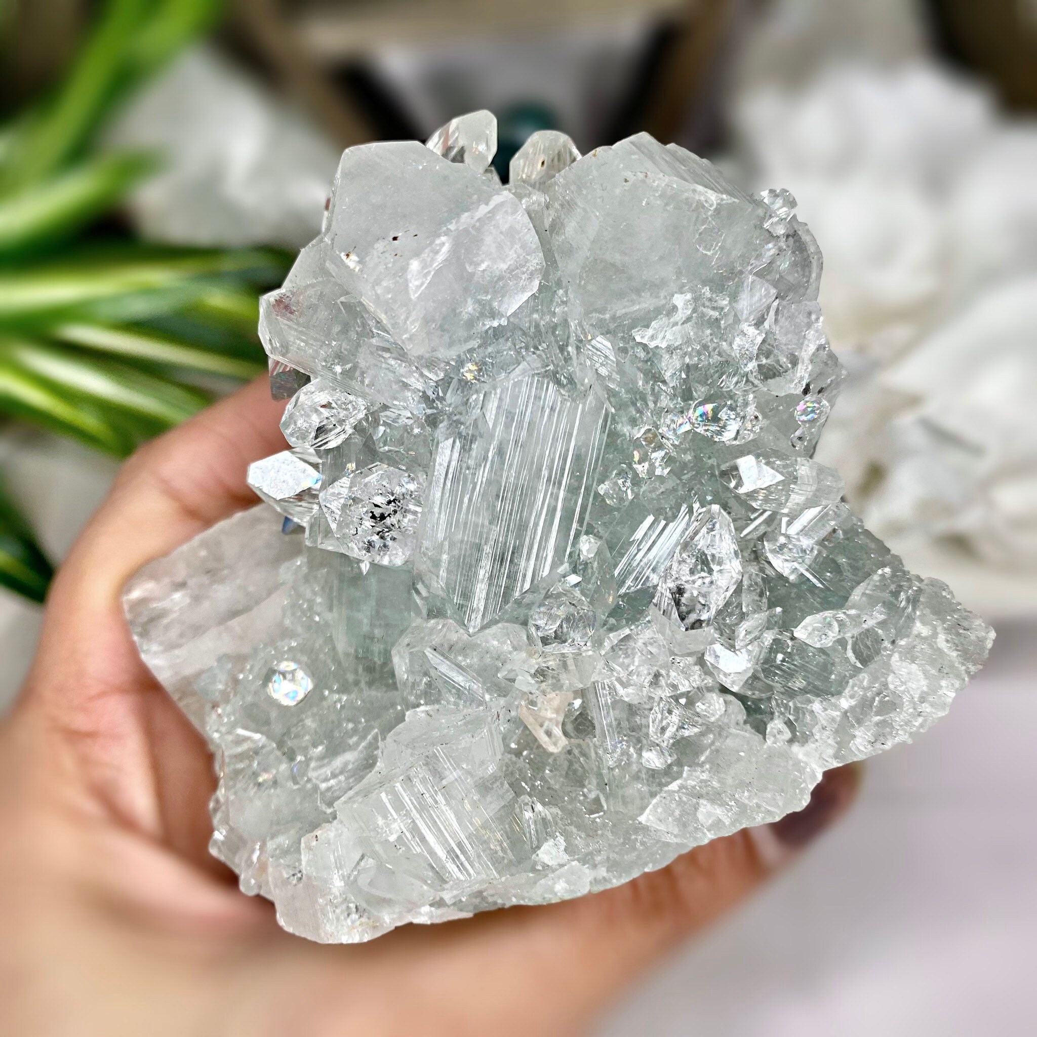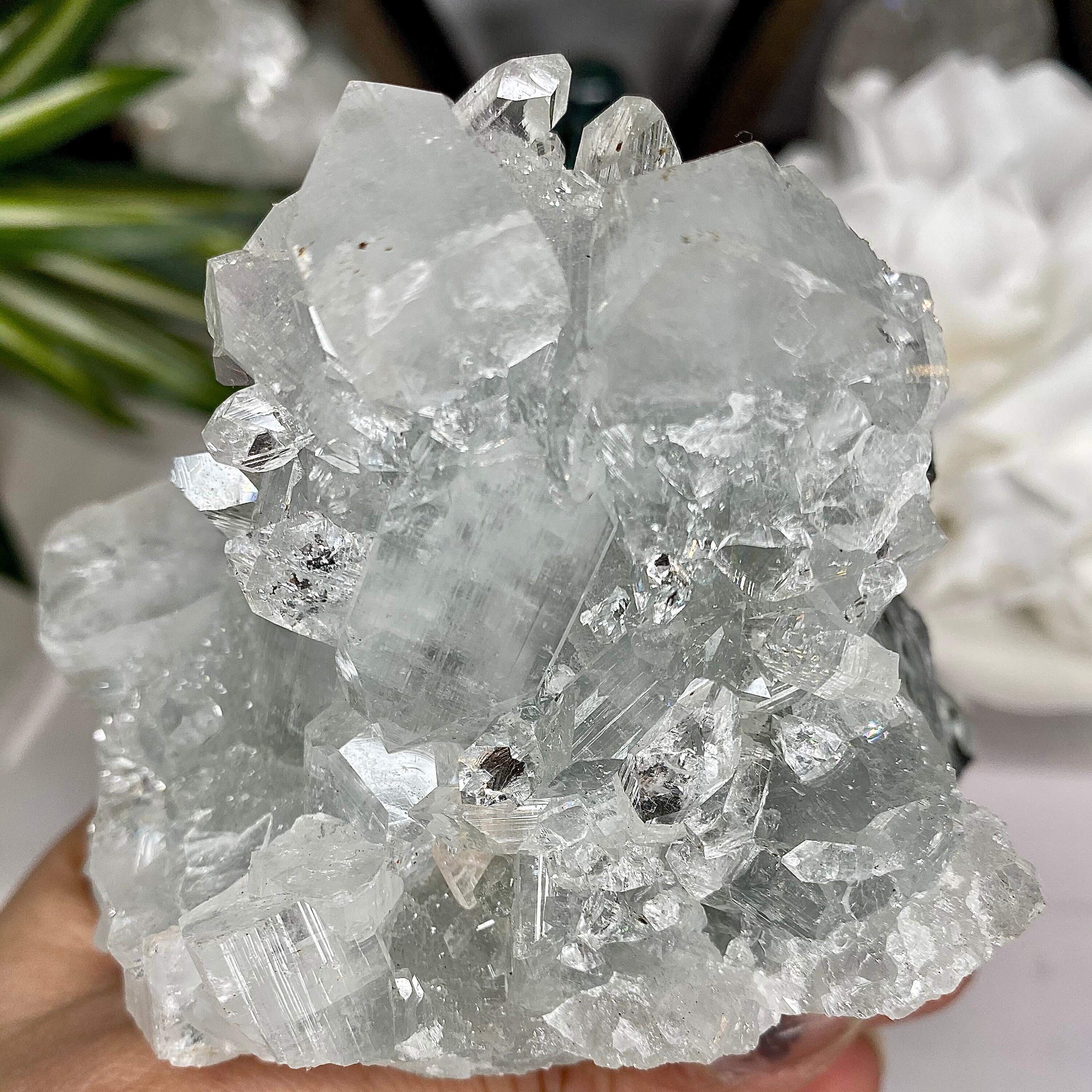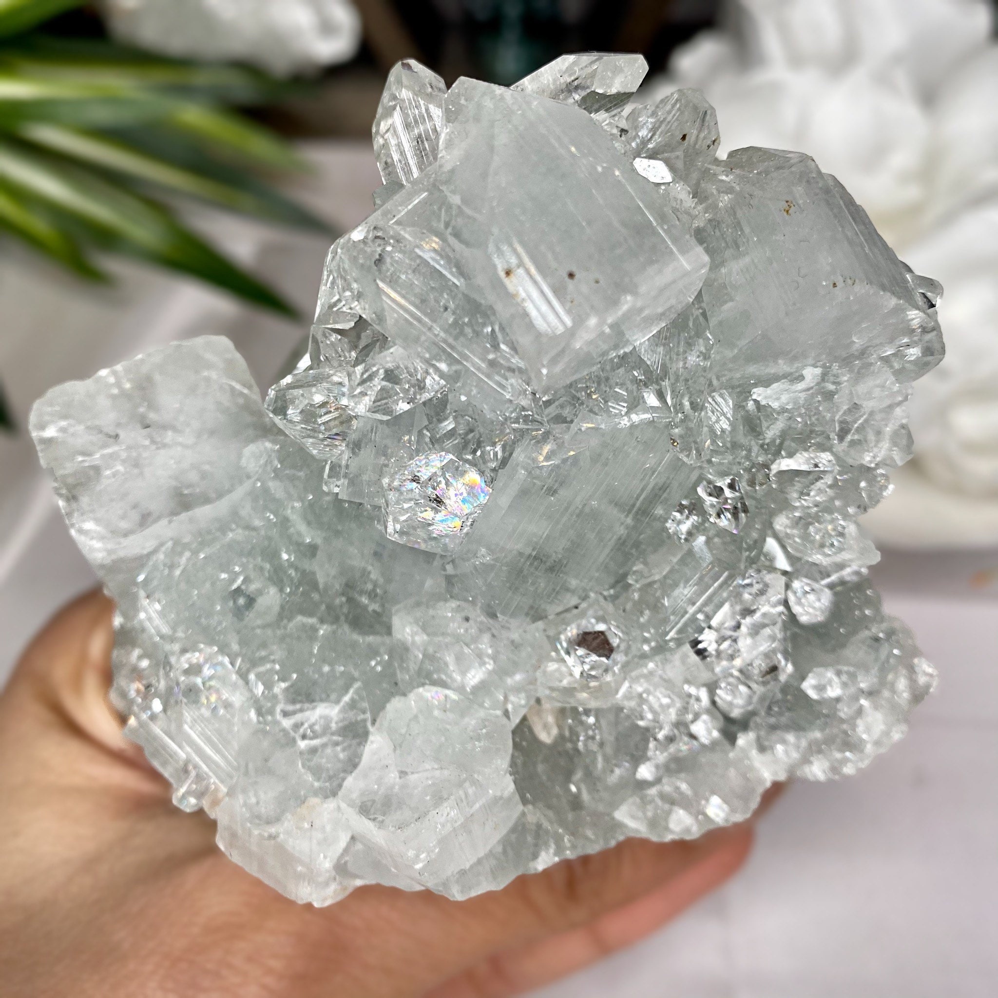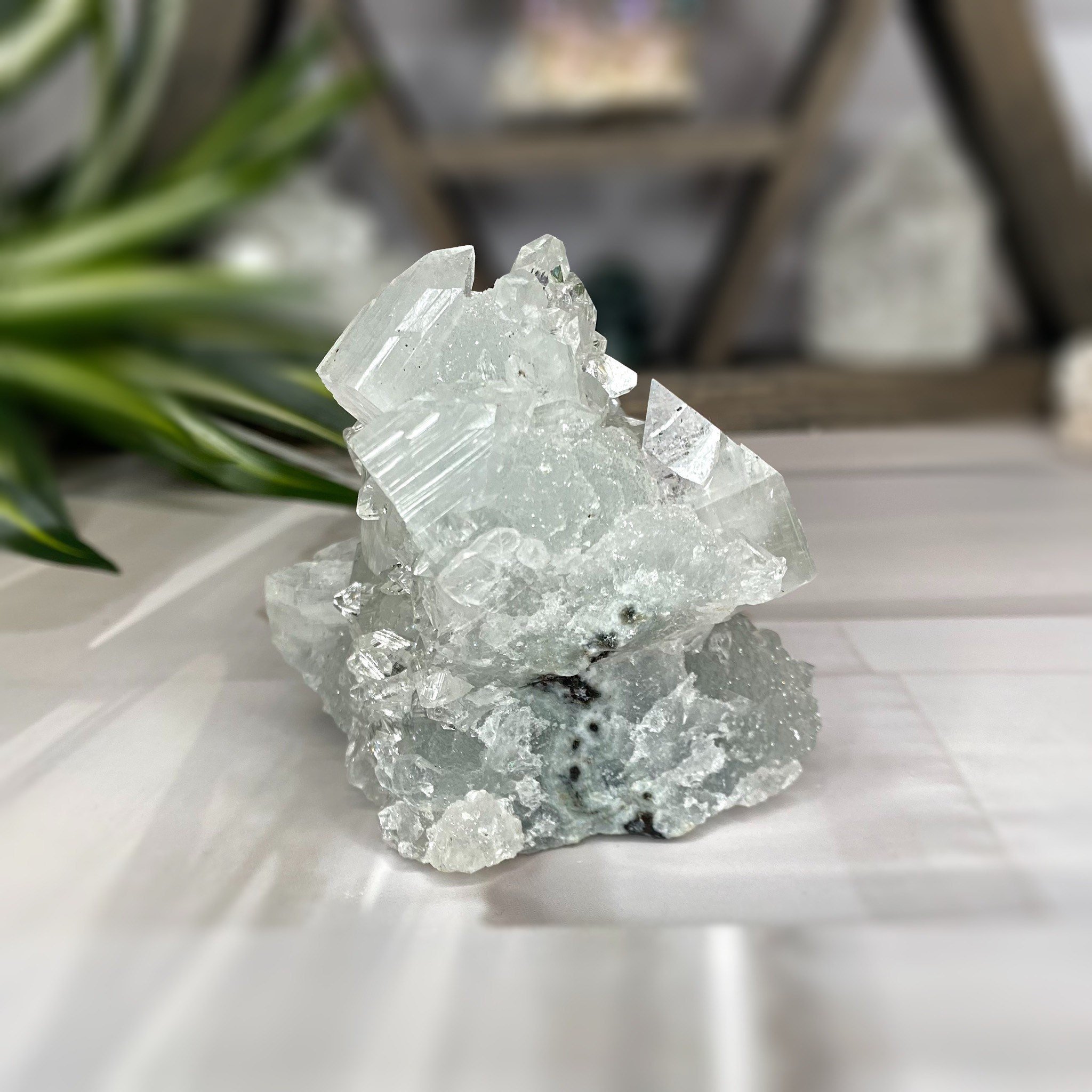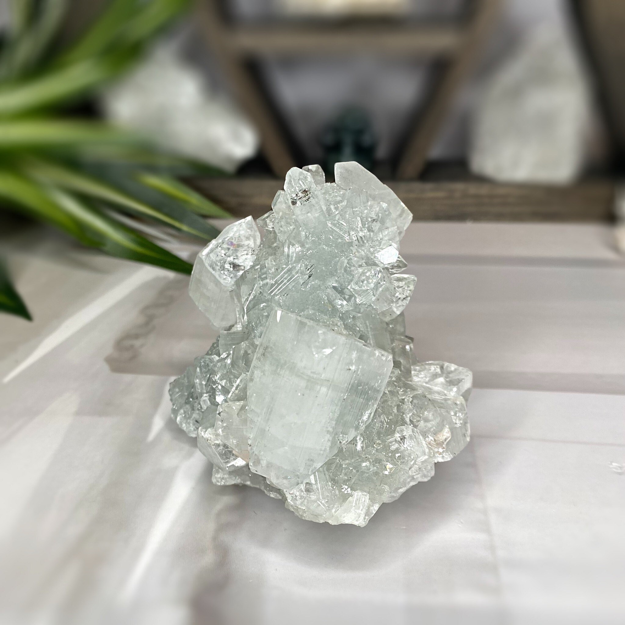 Item Details: One (1) Large Apophyllite Cluster. Specimen from India (approx. 3.5 x 2.75 x 2.75 inches. 358 grams). You will receive the exact item as photographed.