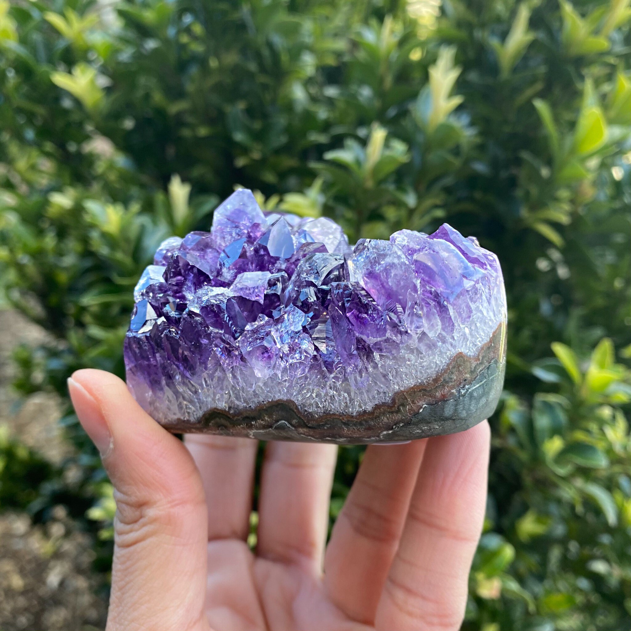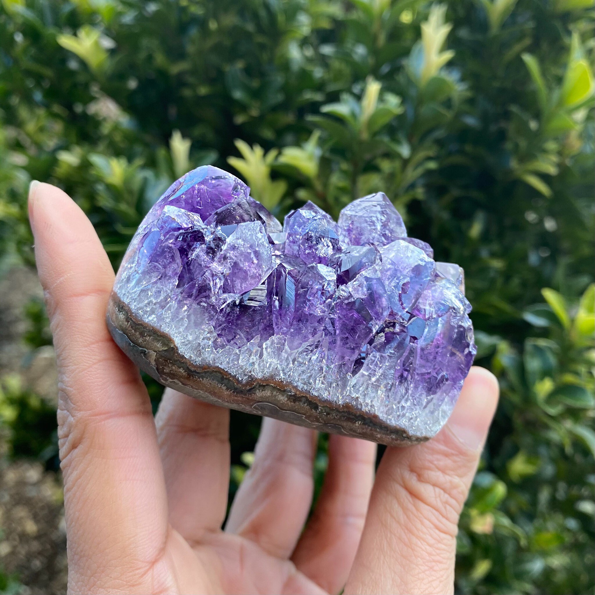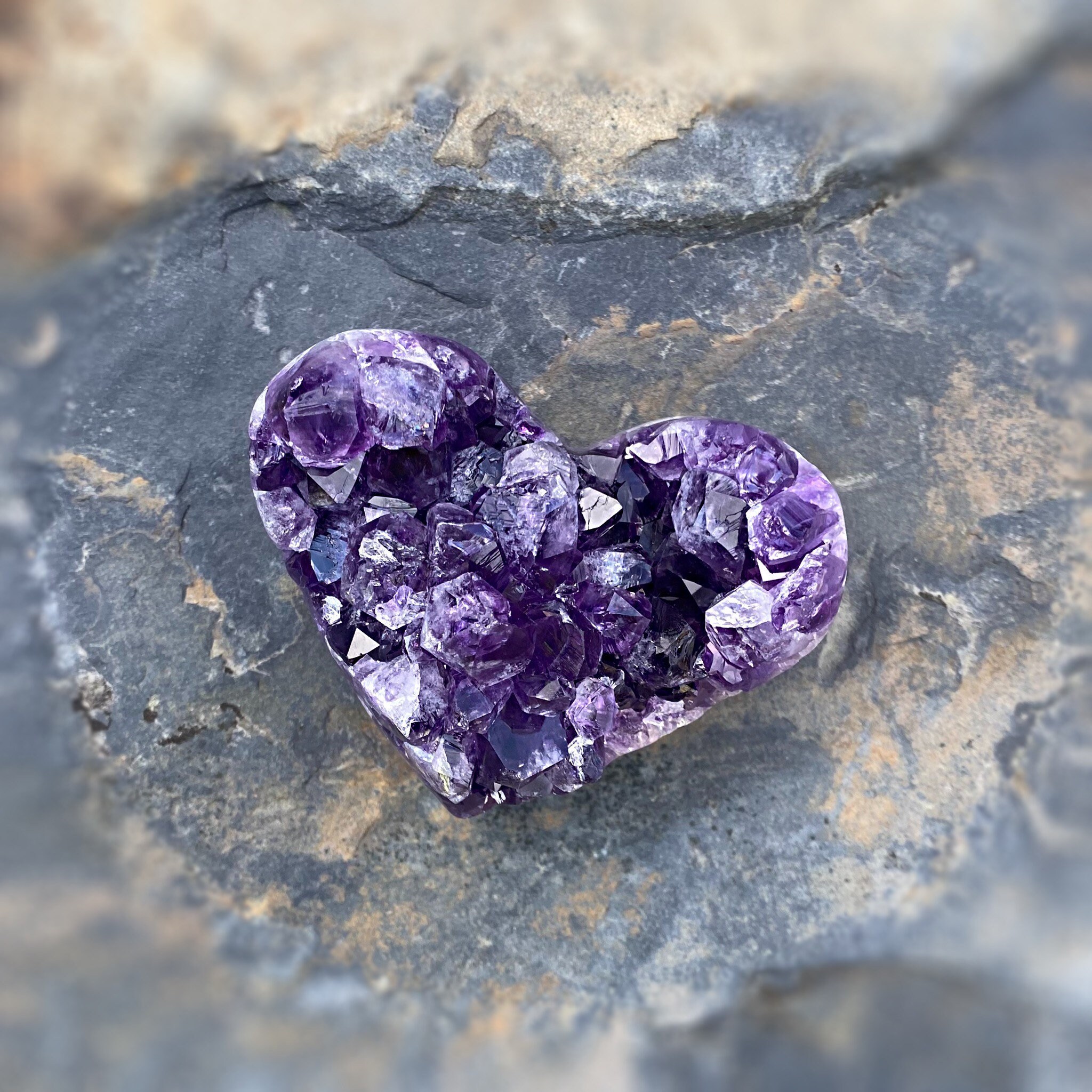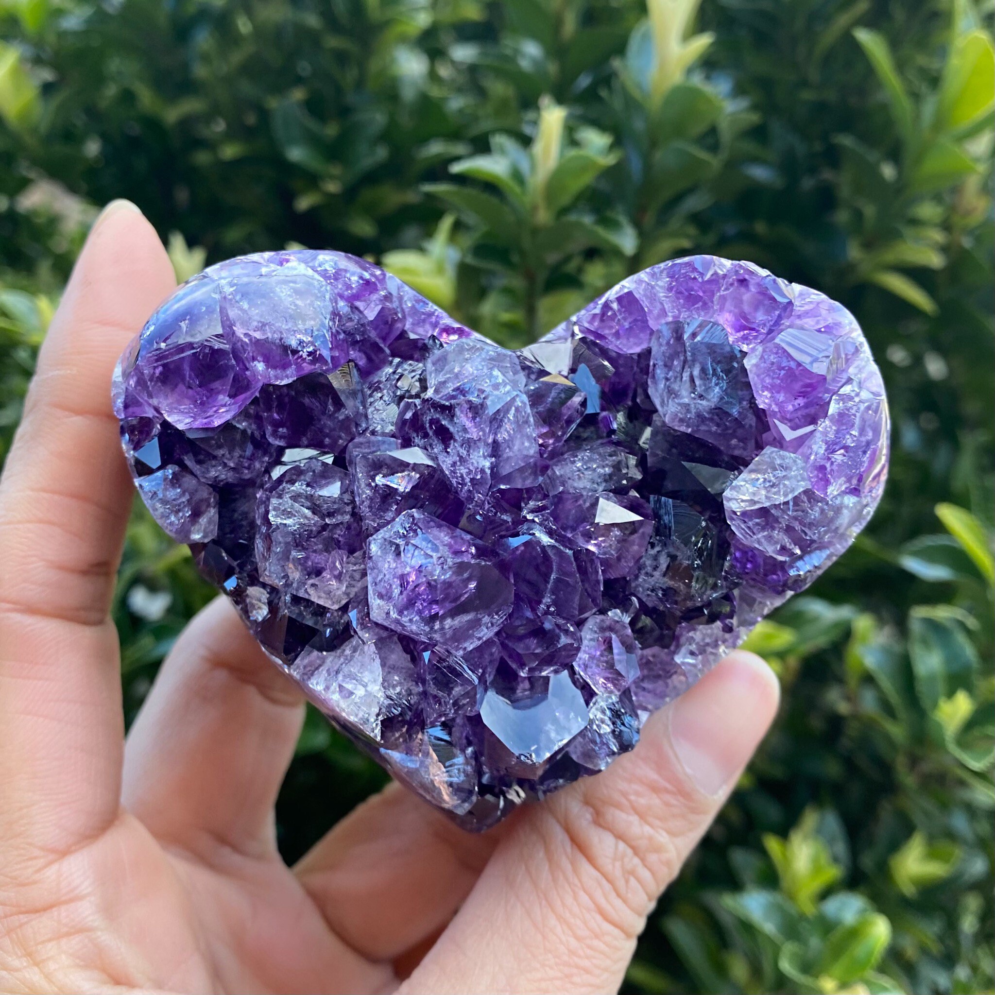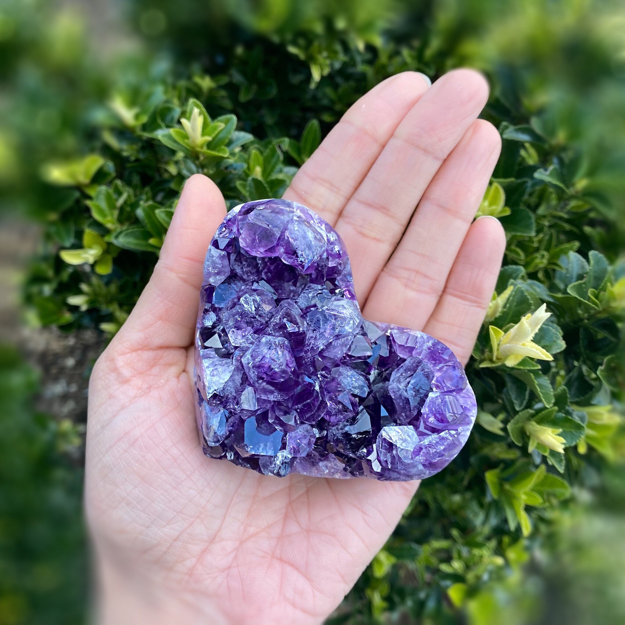 Natural Amethyst Cluster Heart, from Brazil (approx. 3 x 2.5 x 2 inches. 257 grams). This heart shaped geode features beautifully polished edges. You will receive the exact crystal as photographed.